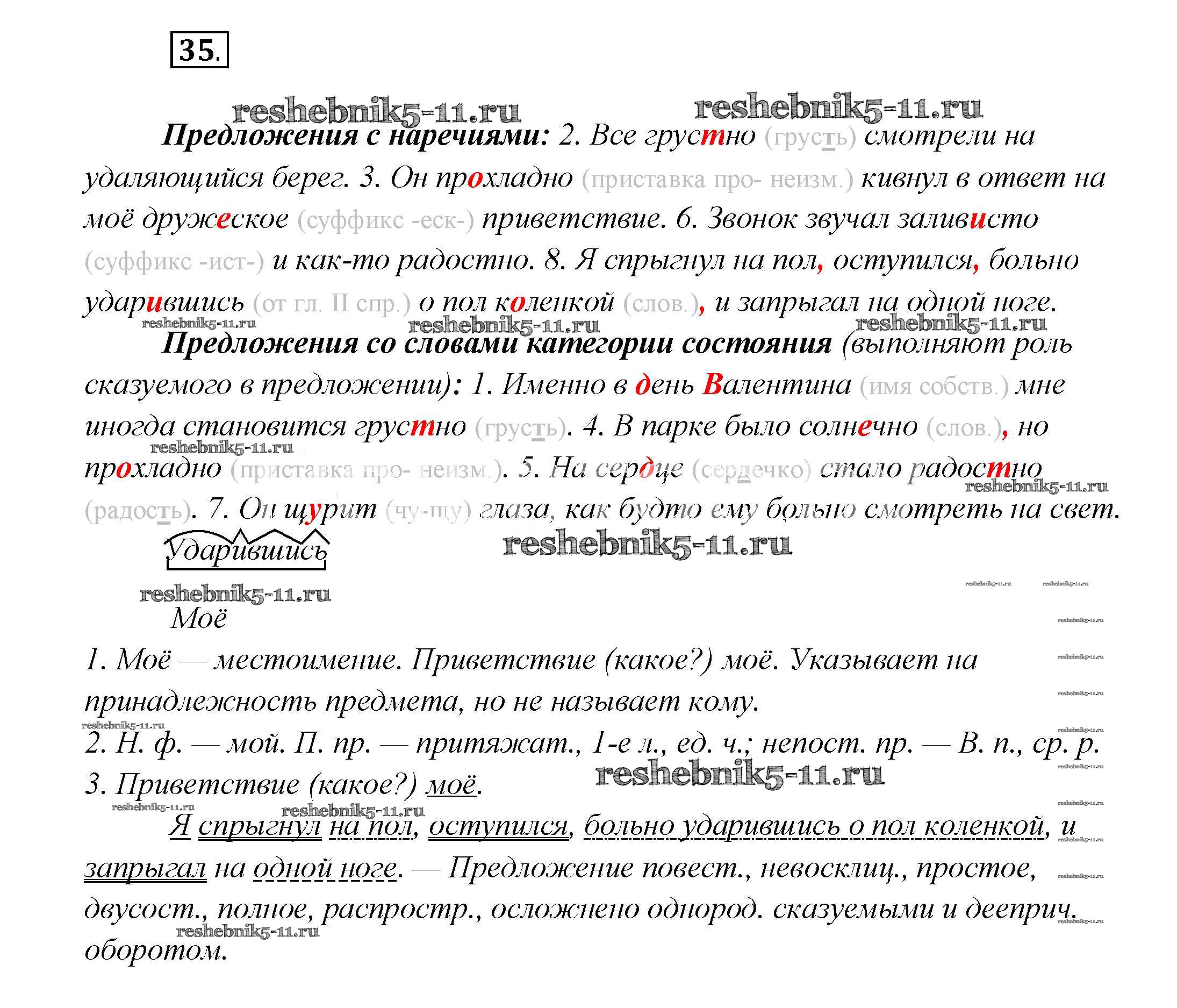 Готовая домашняя работа с ответами по Русскому языку за 7 класс Шмелёв, Флоренская, Савчук, Шмелёва Учебник Алгоритм успеха Вентана-граф 2016 ФГОС - Глава 3 35