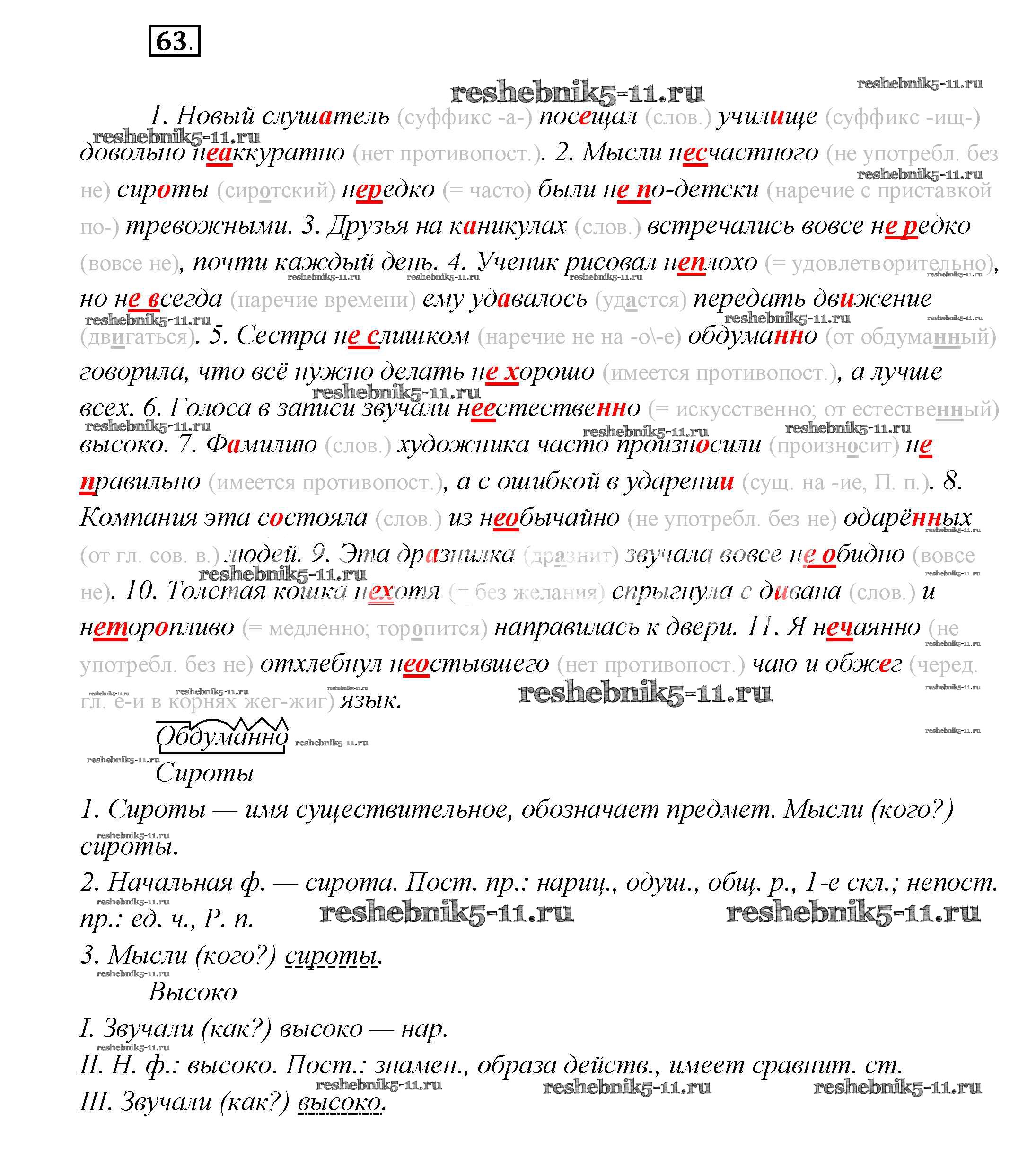 Готовая домашняя работа с ответами по Русскому языку за 7 класс Шмелёв, Флоренская, Савчук, Шмелёва Учебник Алгоритм успеха Вентана-граф 2016 ФГОС - Глава 3 63