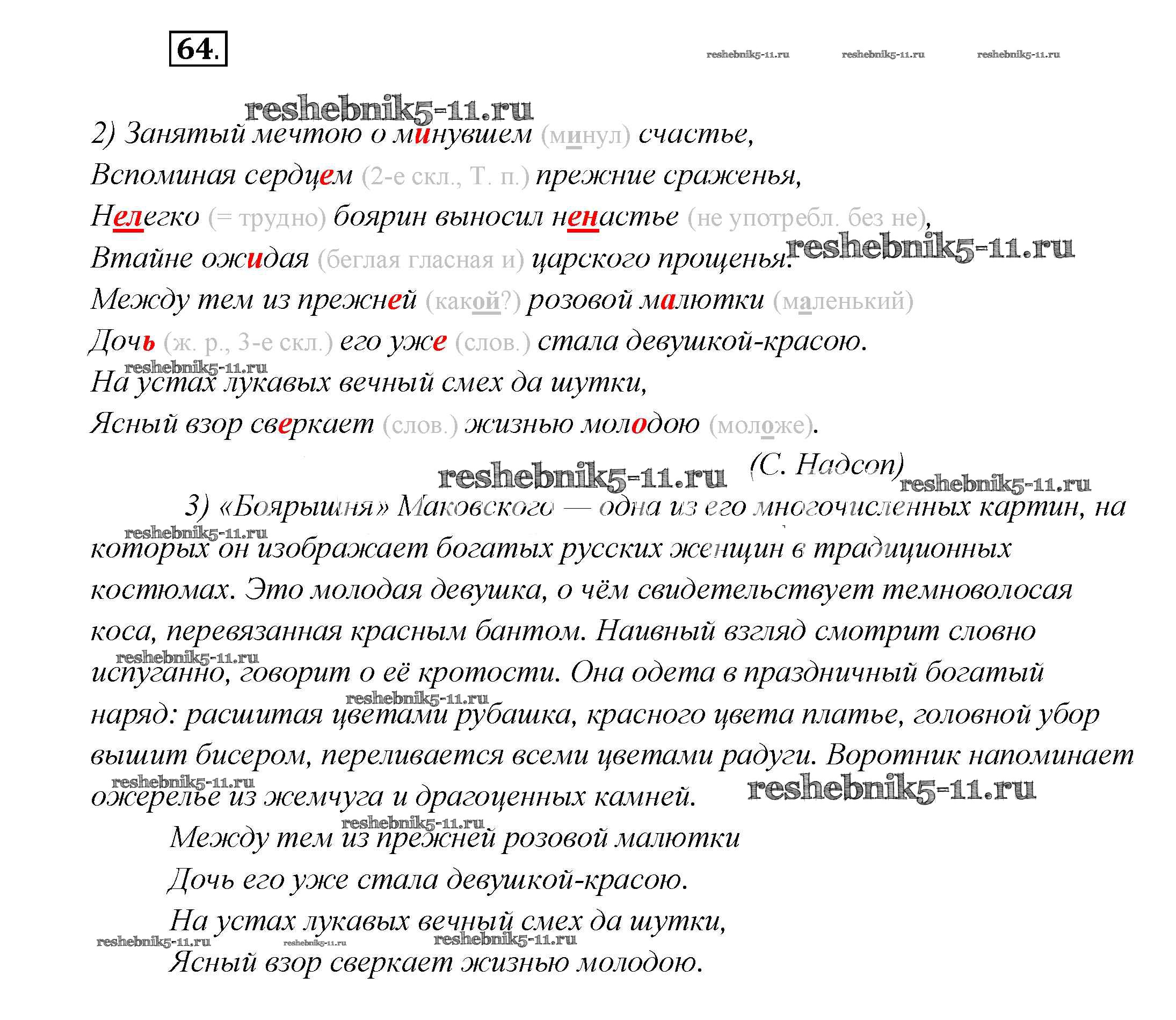 Готовая домашняя работа с ответами по Русскому языку за 7 класс Шмелёв, Флоренская, Савчук, Шмелёва Учебник Алгоритм успеха Вентана-граф 2016 ФГОС - Глава 3 64