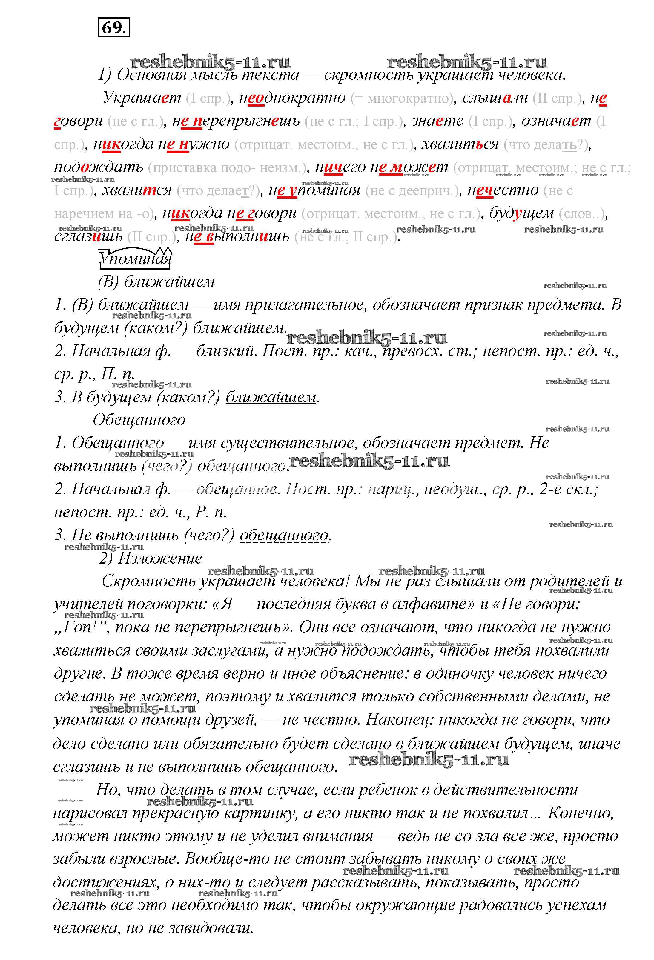Готовая домашняя работа с ответами по Русскому языку за 7 класс Шмелёв, Флоренская, Савчук, Шмелёва Учебник Алгоритм успеха Вентана-граф 2016 ФГОС - Глава 3 69