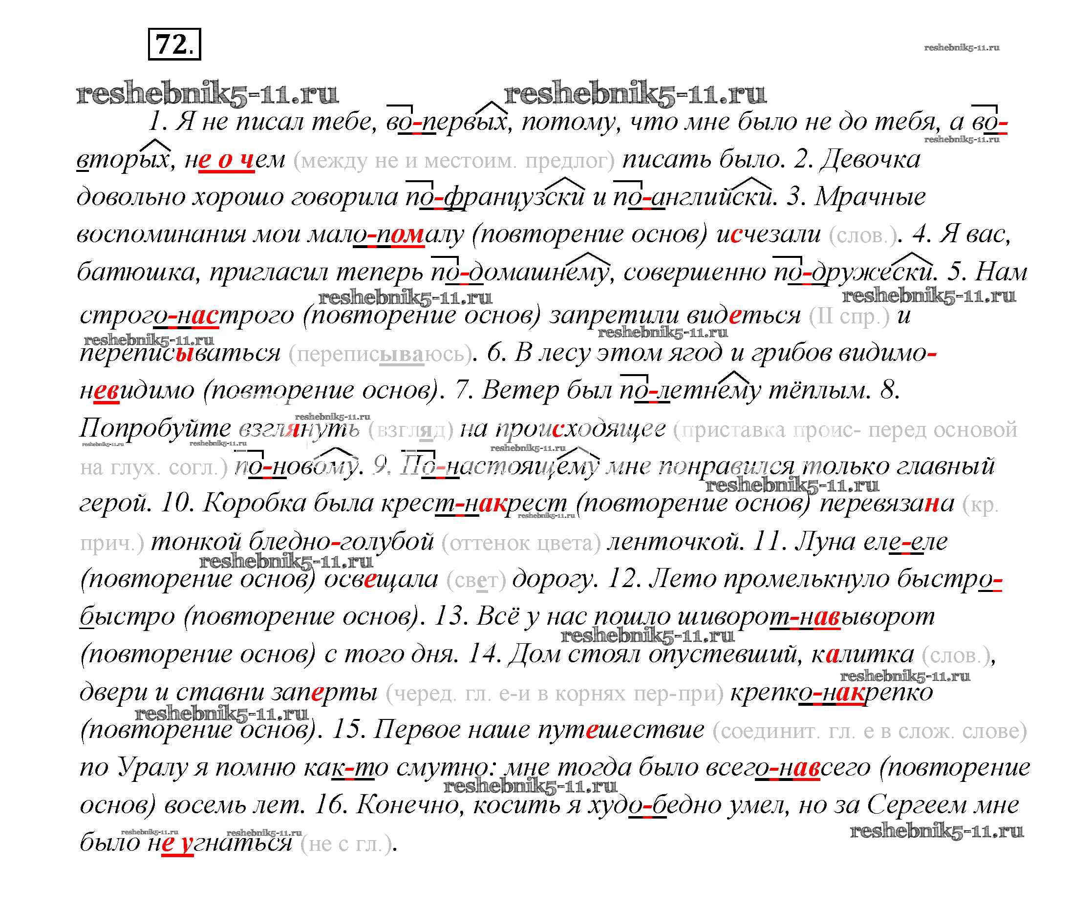 Готовая домашняя работа с ответами по Русскому языку за 7 класс Шмелёв, Флоренская, Савчук, Шмелёва Учебник Алгоритм успеха Вентана-граф 2016 ФГОС - Глава 3 72