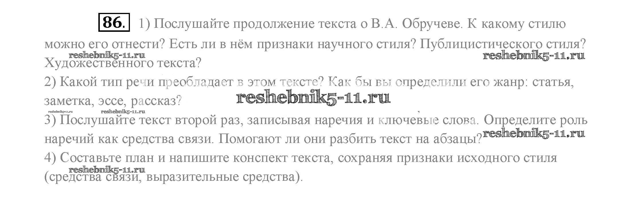 Готовая домашняя работа с ответами по Русскому языку за 7 класс Шмелёв, Флоренская, Савчук, Шмелёва Учебник Алгоритм успеха Вентана-граф 2016 ФГОС - Глава 3 86