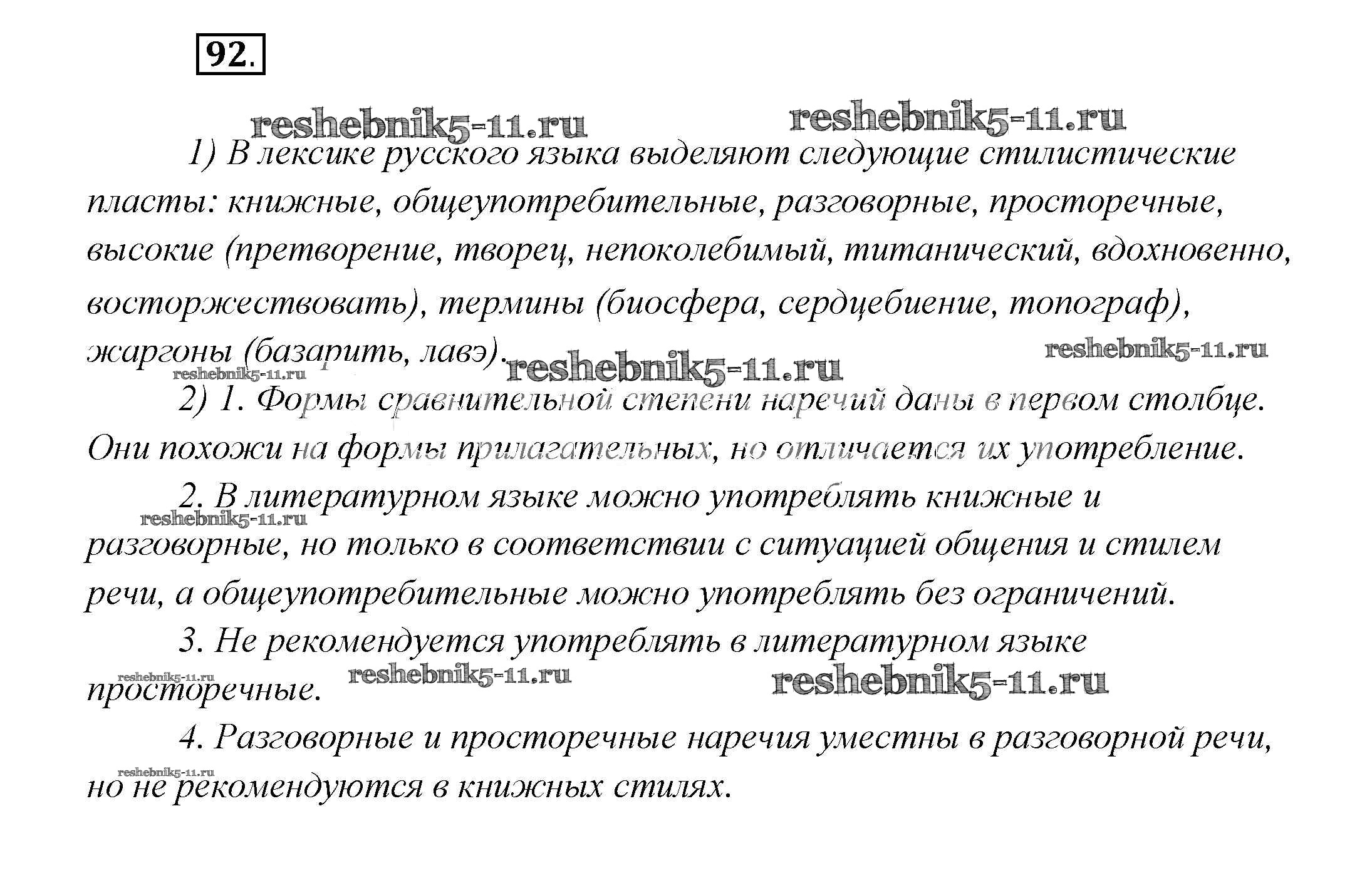 Готовая домашняя работа с ответами по Русскому языку за 7 класс Шмелёв, Флоренская, Савчук, Шмелёва Учебник Алгоритм успеха Вентана-граф 2016 ФГОС - Глава 3 92
