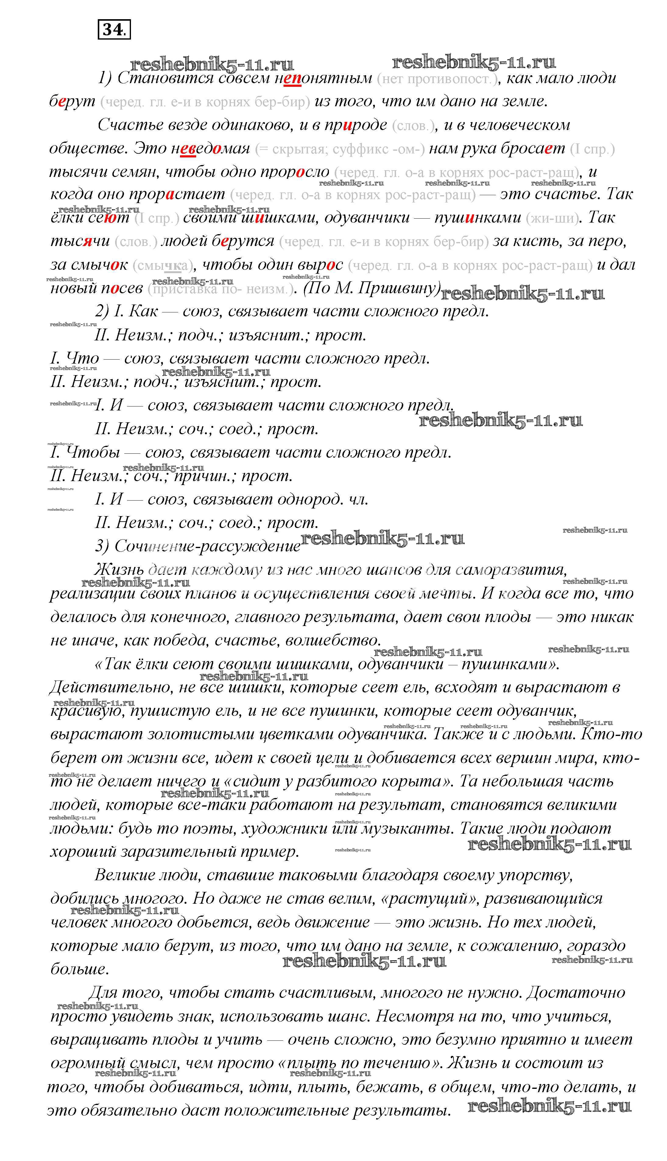 Готовая домашняя работа с ответами по Русскому языку за 7 класс Шмелёв, Флоренская, Савчук, Шмелёва Учебник Алгоритм успеха Вентана-граф 2016 ФГОС - Глава 4 34