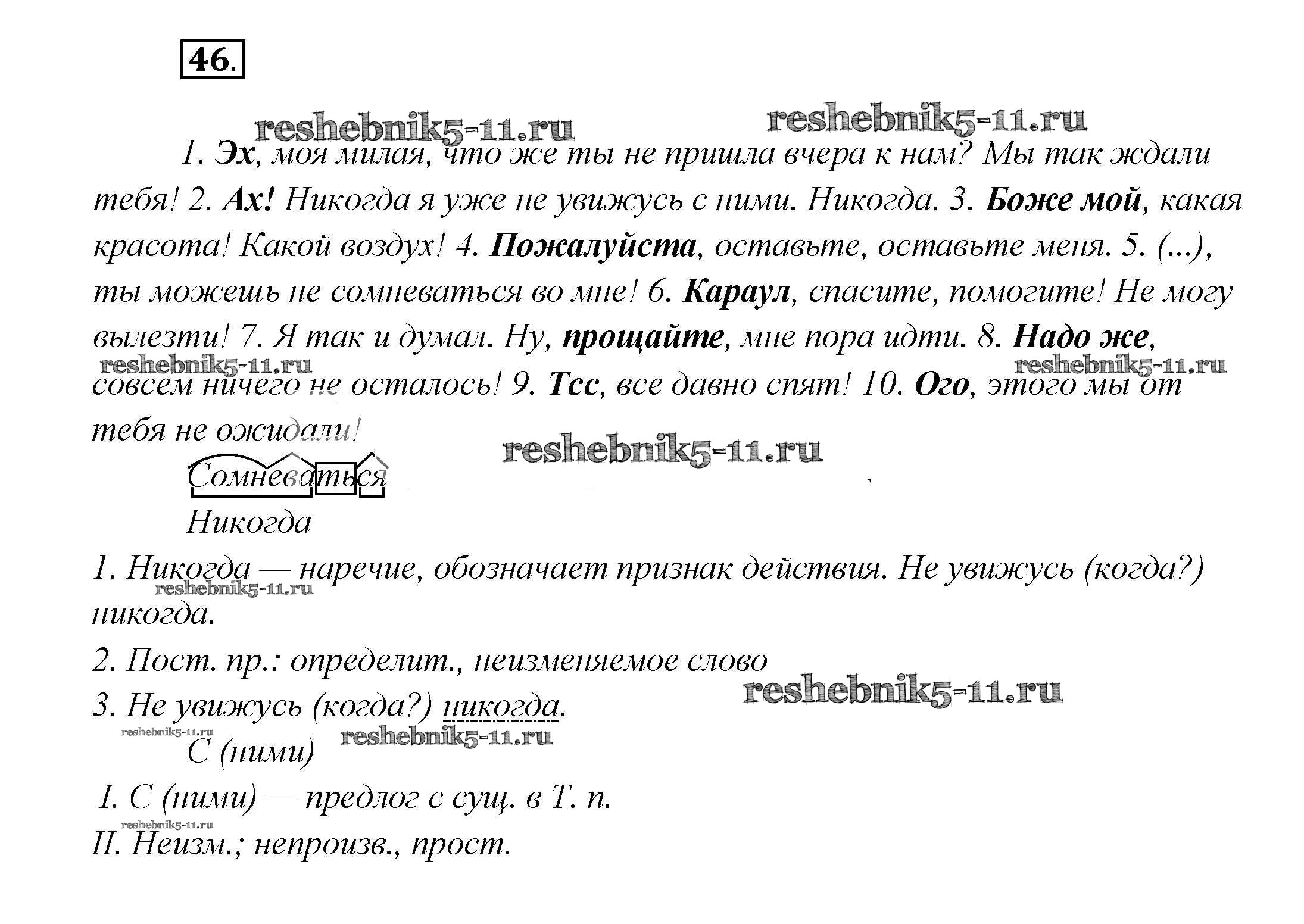 Готовая домашняя работа с ответами по Русскому языку за 7 класс Шмелёв, Флоренская, Савчук, Шмелёва Учебник Алгоритм успеха Вентана-граф 2016 ФГОС - Глава 4 46