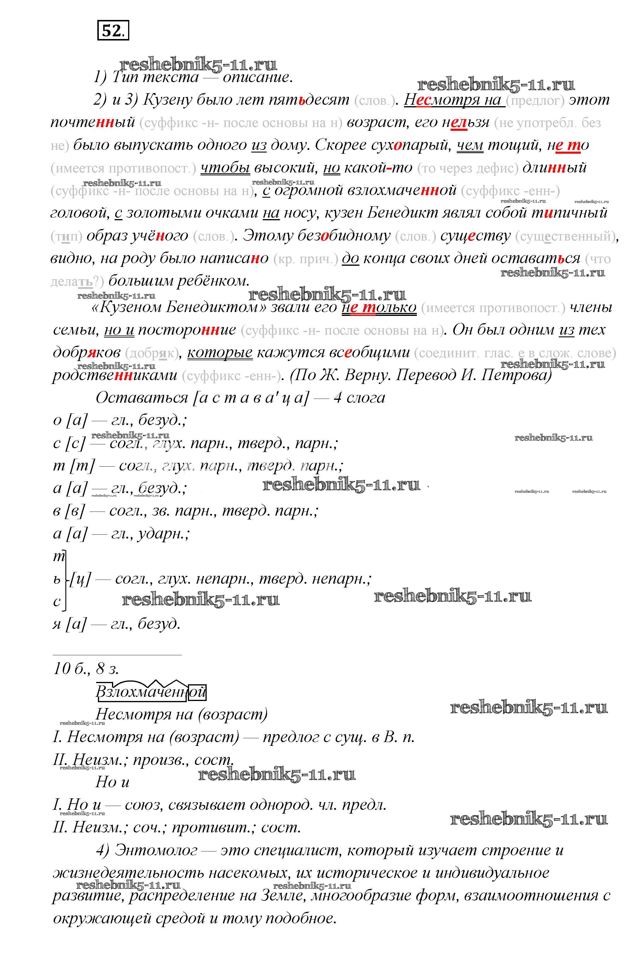Готовая домашняя работа с ответами по Русскому языку за 7 класс Шмелёв, Флоренская, Савчук, Шмелёва Учебник Алгоритм успеха Вентана-граф 2016 ФГОС - Глава 4 52