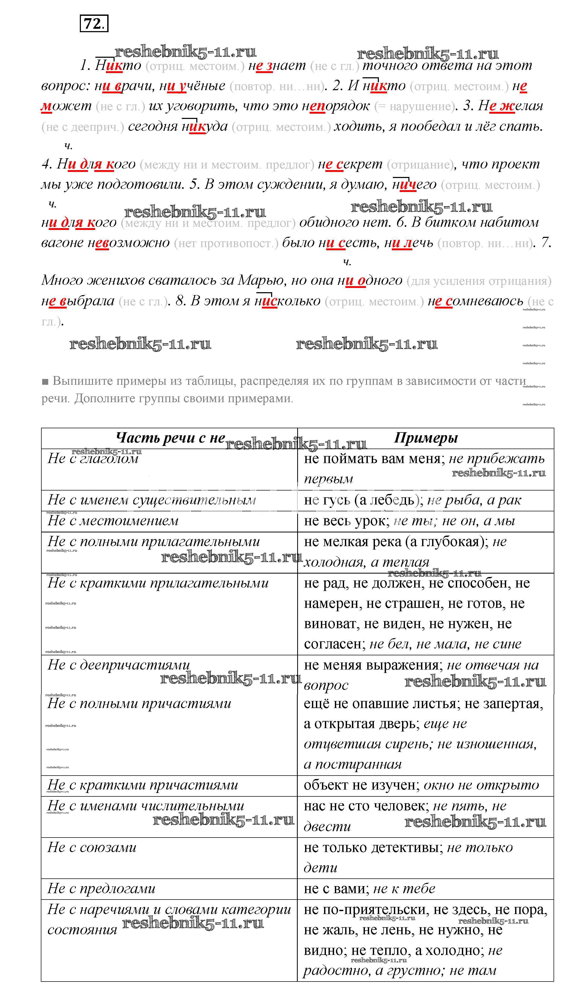 Готовая домашняя работа с ответами по Русскому языку за 7 класс Шмелёв, Флоренская, Савчук, Шмелёва Учебник Алгоритм успеха Вентана-граф 2016 ФГОС - Глава 4 72