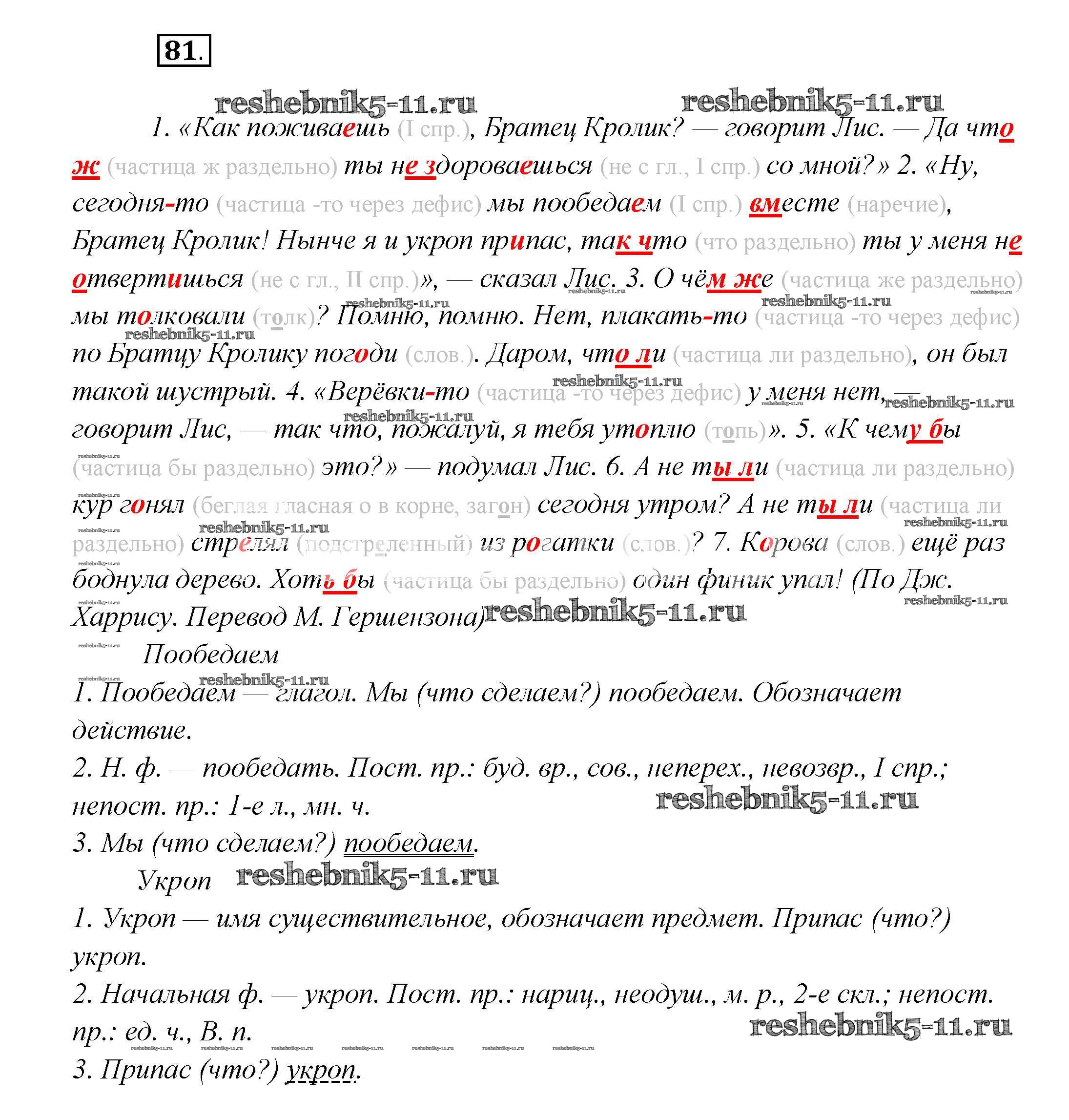 Готовая домашняя работа с ответами по Русскому языку за 7 класс Шмелёв, Флоренская, Савчук, Шмелёва Учебник Алгоритм успеха Вентана-граф 2016 ФГОС - Глава 4 81
