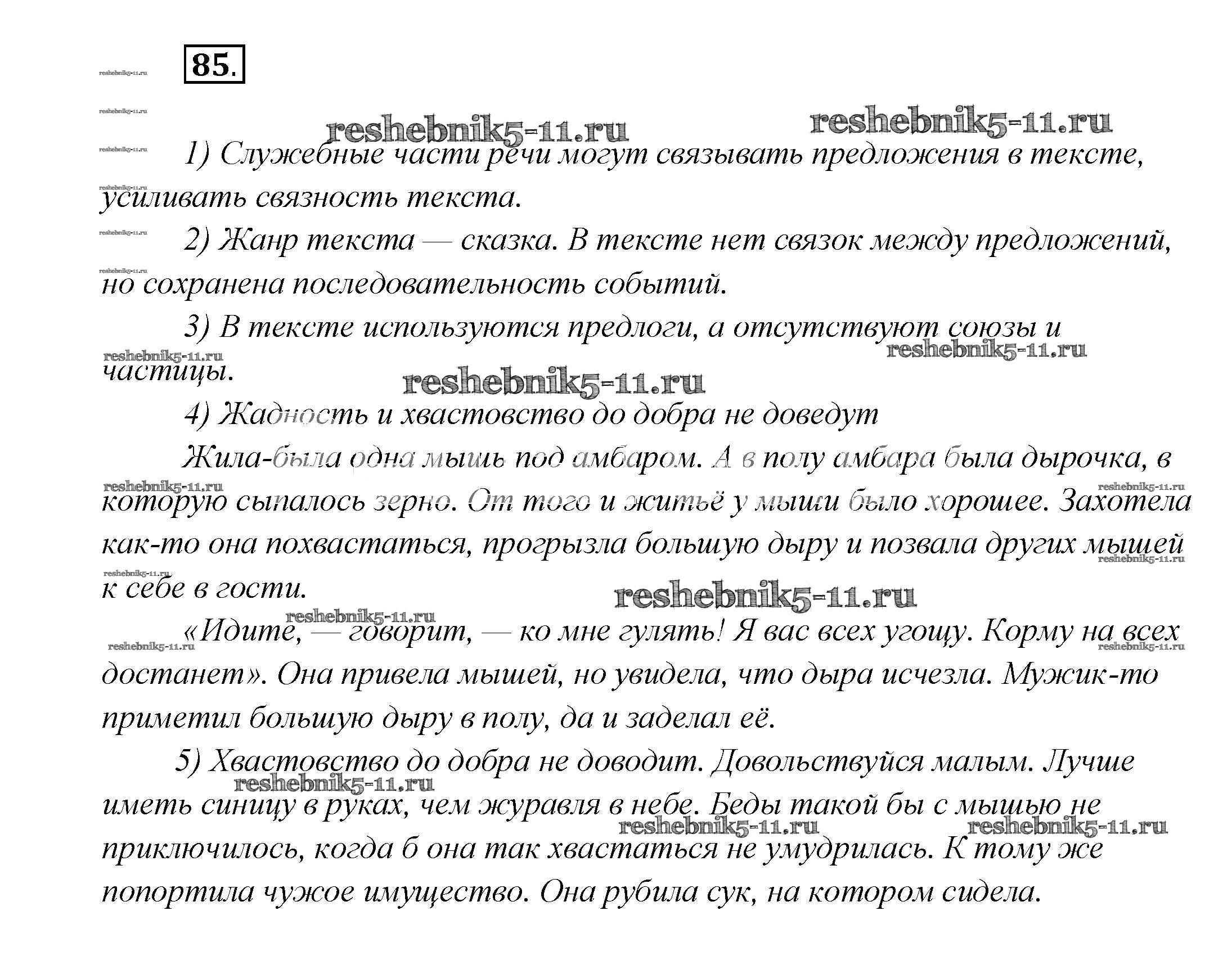 Готовая домашняя работа с ответами по Русскому языку за 7 класс Шмелёв, Флоренская, Савчук, Шмелёва Учебник Алгоритм успеха Вентана-граф 2016 ФГОС - Глава 4 85