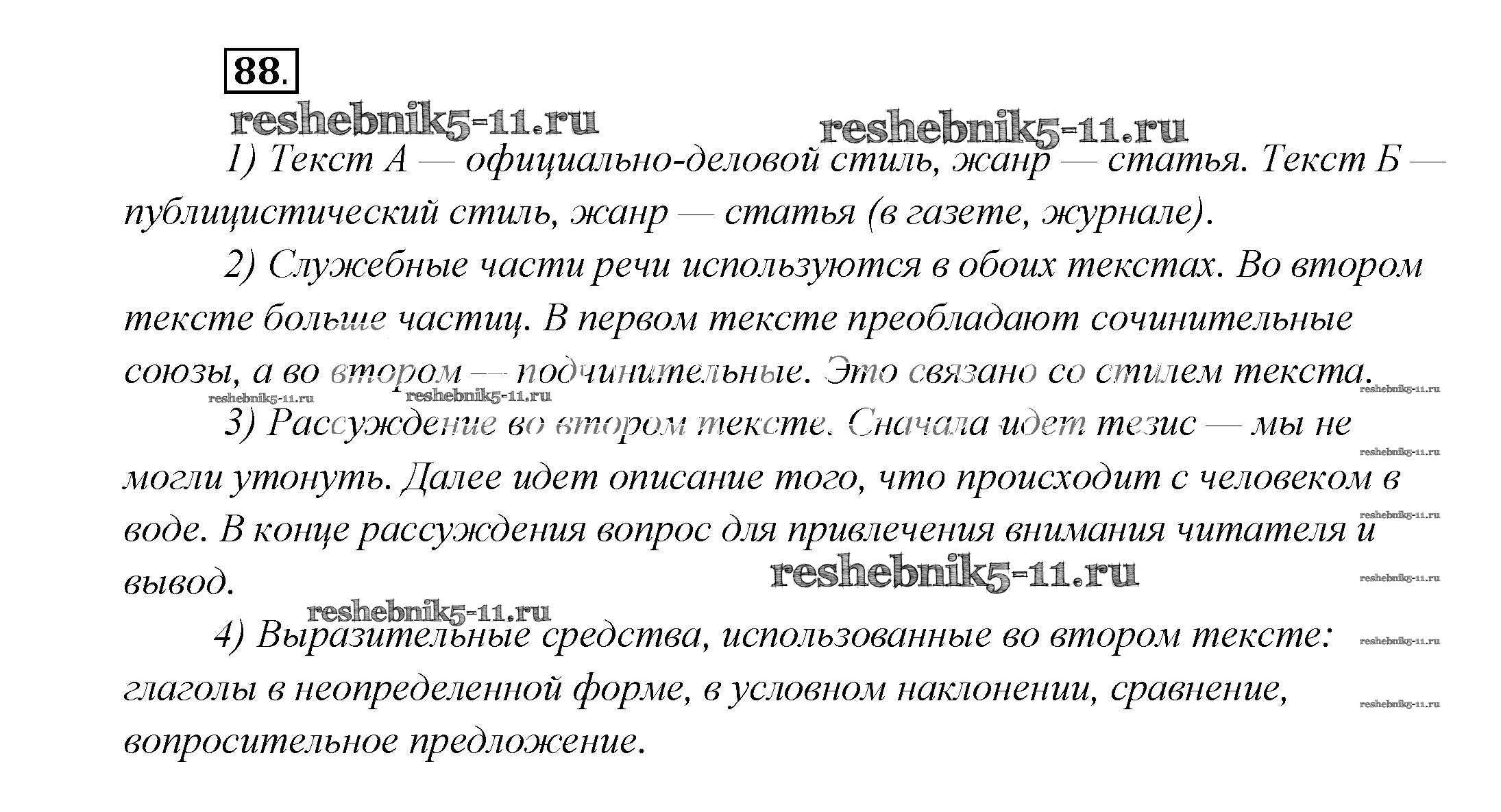 Готовая домашняя работа с ответами по Русскому языку за 7 класс Шмелёв, Флоренская, Савчук, Шмелёва Учебник Алгоритм успеха Вентана-граф 2016 ФГОС - Глава 4 88