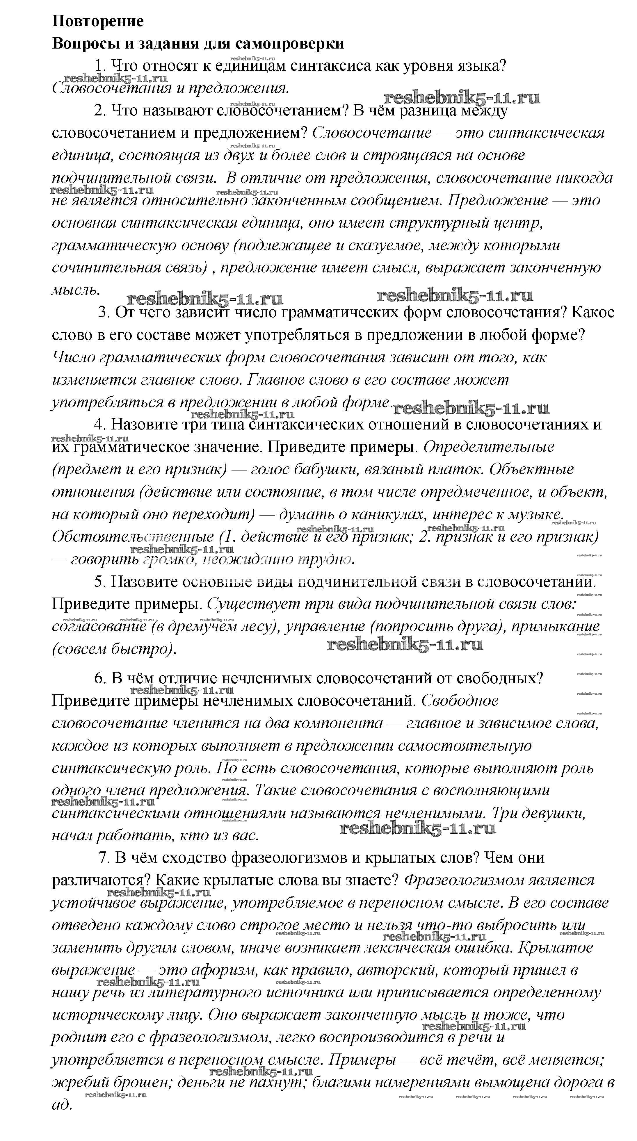 Готовая домашняя работа с ответами по Русскому языку за 7 класс Шмелёв, Флоренская, Савчук, Шмелёва Учебник Алгоритм успеха Вентана-граф 2016 ФГОС - Повторение 1