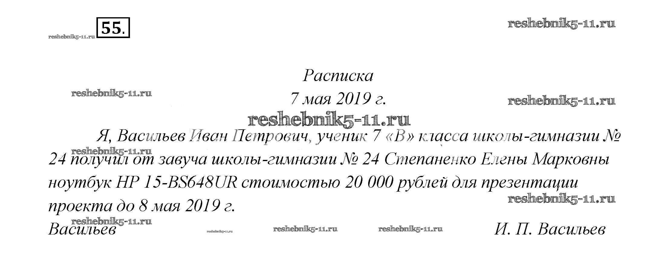 Русский язык за 7 класс Шмелёв Учебник Алгоритм успеха Вентана-граф глава 5 55