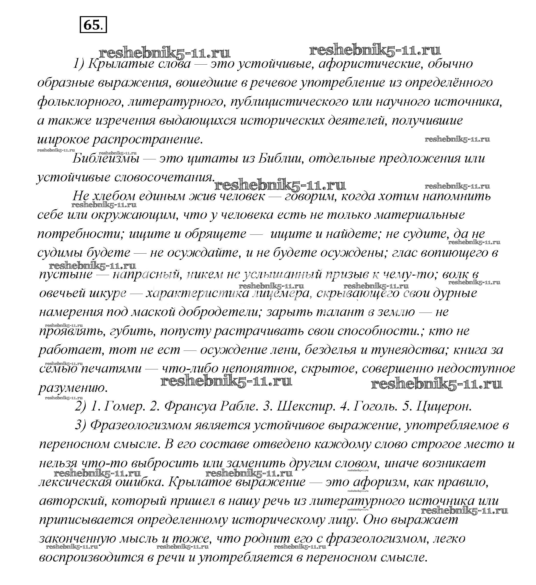 Готовая домашняя работа с ответами по Русскому языку за 7 класс Шмелёв, Флоренская, Савчук, Шмелёва Учебник Алгоритм успеха Вентана-граф 2016 ФГОС - Глава 5 65