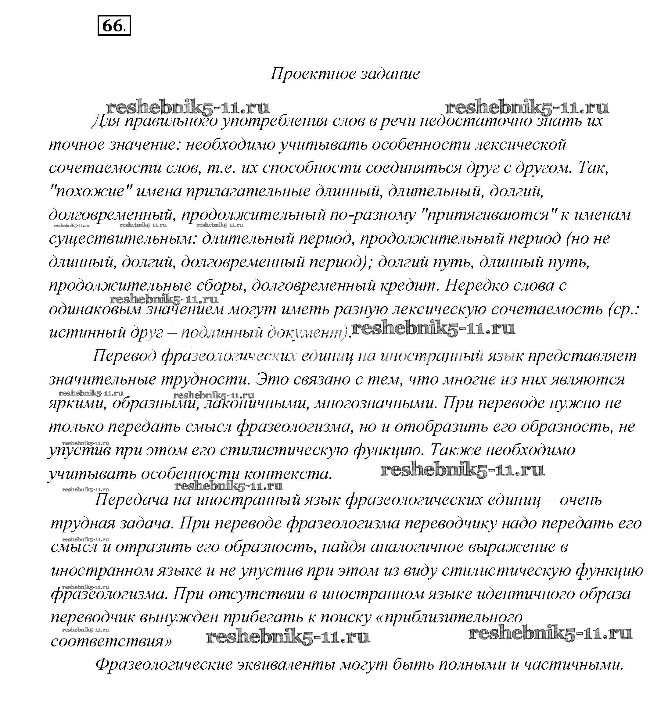 Готовая домашняя работа с ответами по Русскому языку за 7 класс Шмелёв, Флоренская, Савчук, Шмелёва Учебник Алгоритм успеха Вентана-граф 2016 ФГОС - Глава 5 66