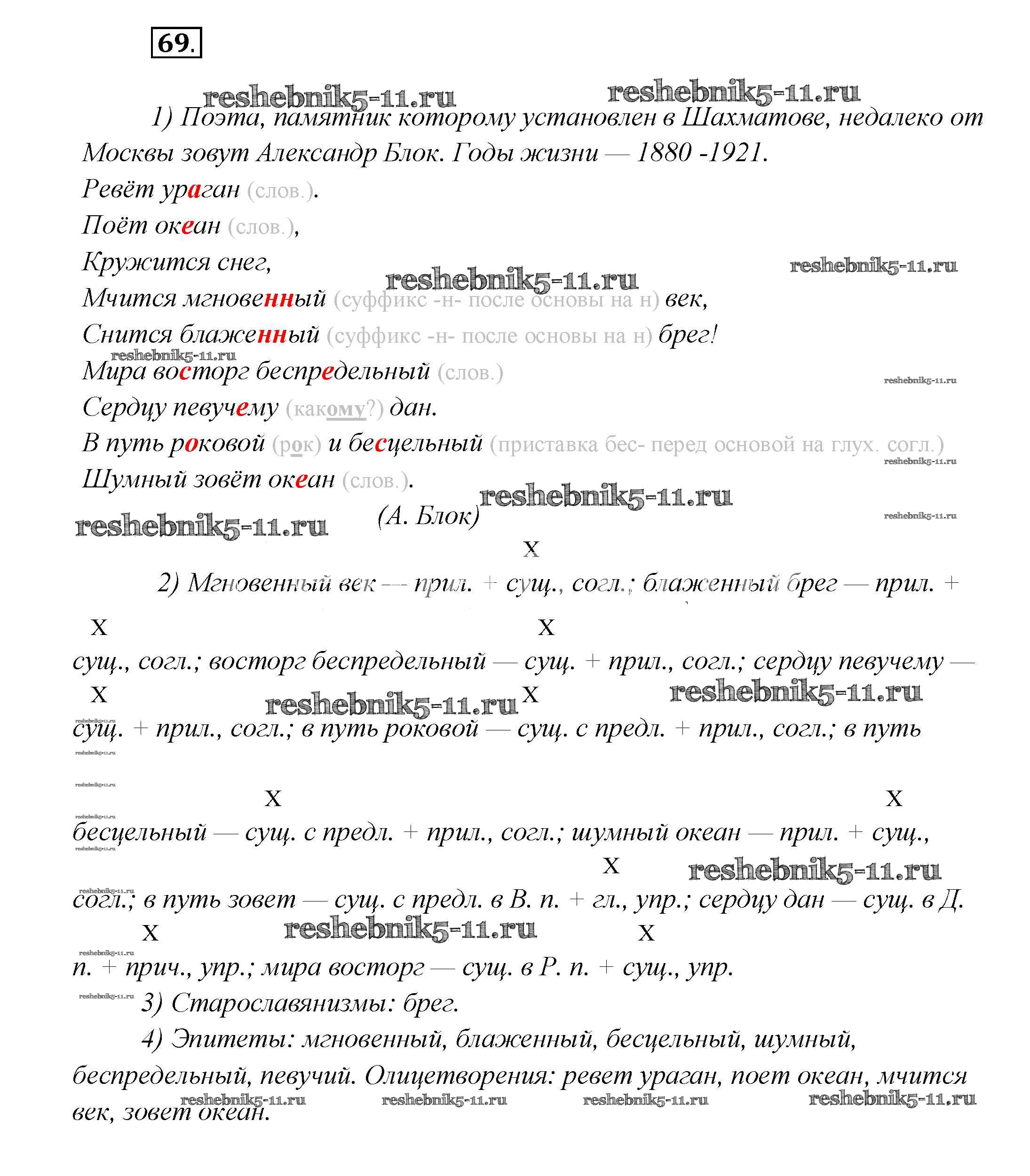 Готовая домашняя работа с ответами по Русскому языку за 7 класс Шмелёв, Флоренская, Савчук, Шмелёва Учебник Алгоритм успеха Вентана-граф 2016 ФГОС - Глава 5 69