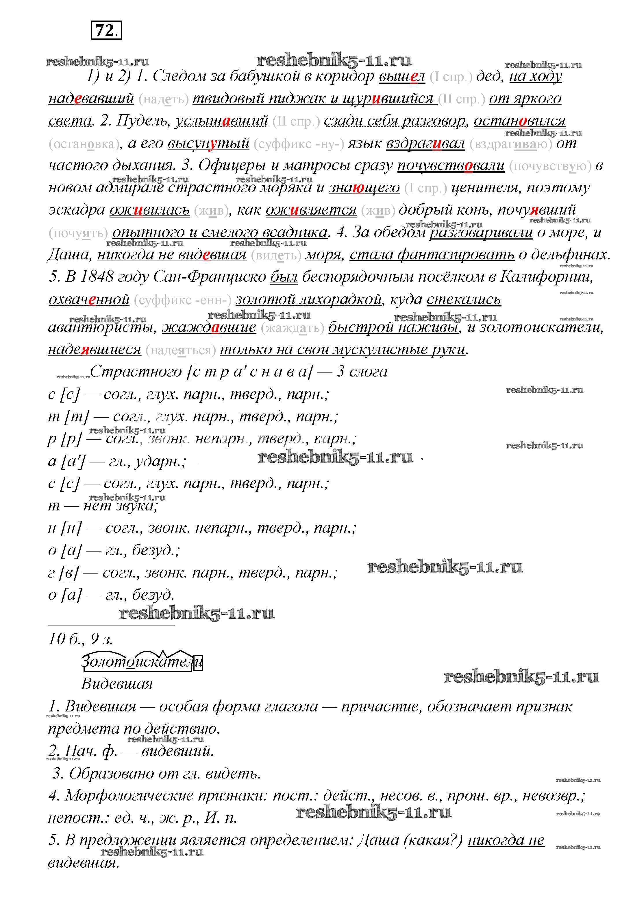 Готовая домашняя работа с ответами по Русскому языку за 7 класс Шмелёв, Флоренская, Савчук, Шмелёва Учебник Алгоритм успеха Вентана-граф 2016 ФГОС - Глава 5 72