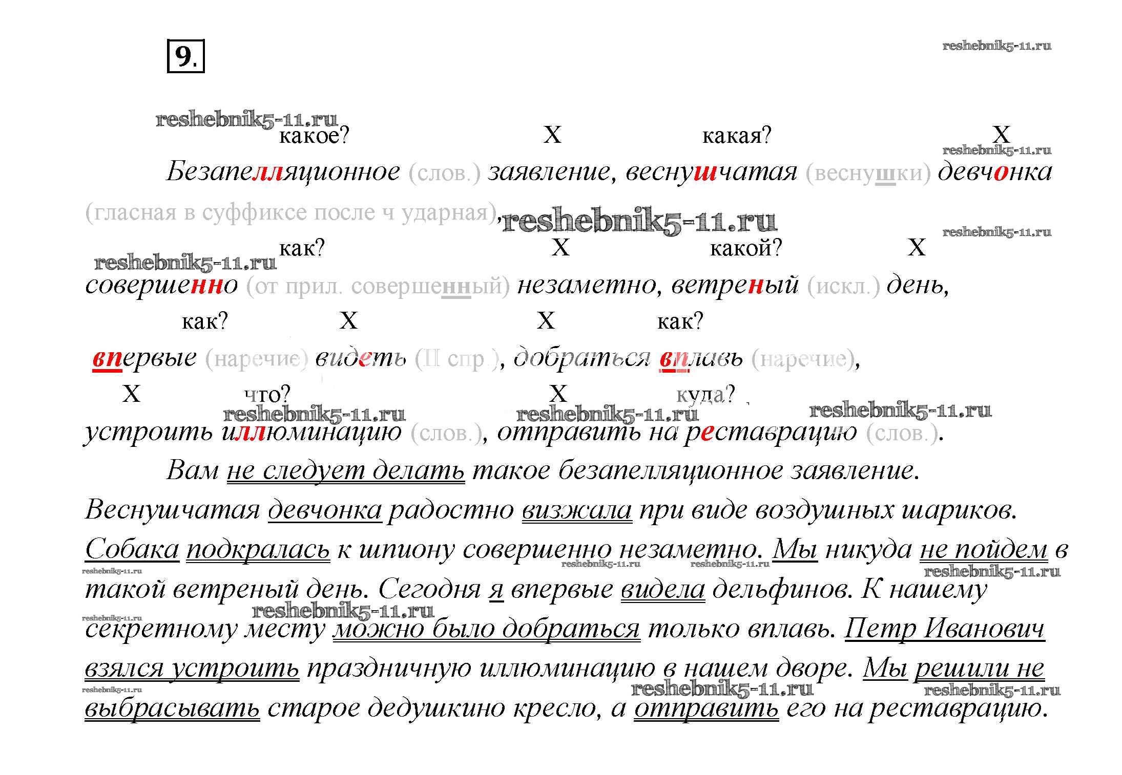 Готовая домашняя работа с ответами по Русскому языку за 7 класс Шмелёв, Флоренская, Савчук, Шмелёва Учебник Алгоритм успеха Вентана-граф 2016 ФГОС - Глава 5 9