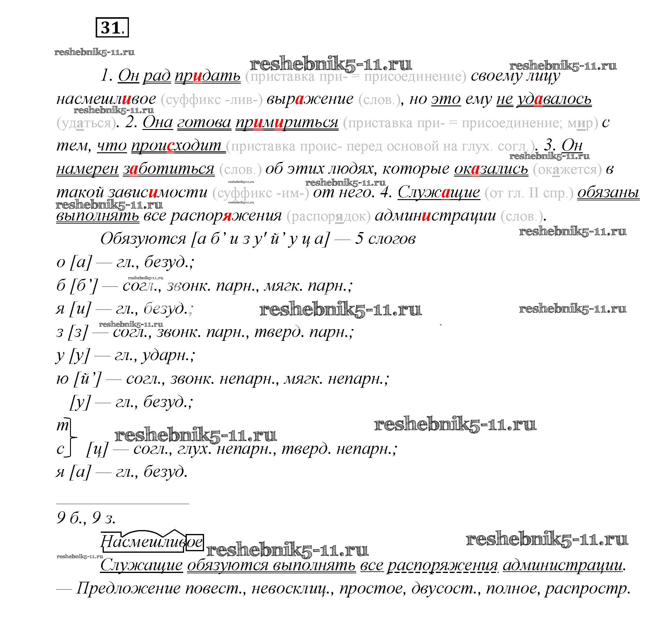 Готовая домашняя работа с ответами по Русскому языку за 7 класс Шмелёв, Флоренская, Савчук, Шмелёва Учебник Алгоритм успеха Вентана-граф 2016 ФГОС - Глава 6 31