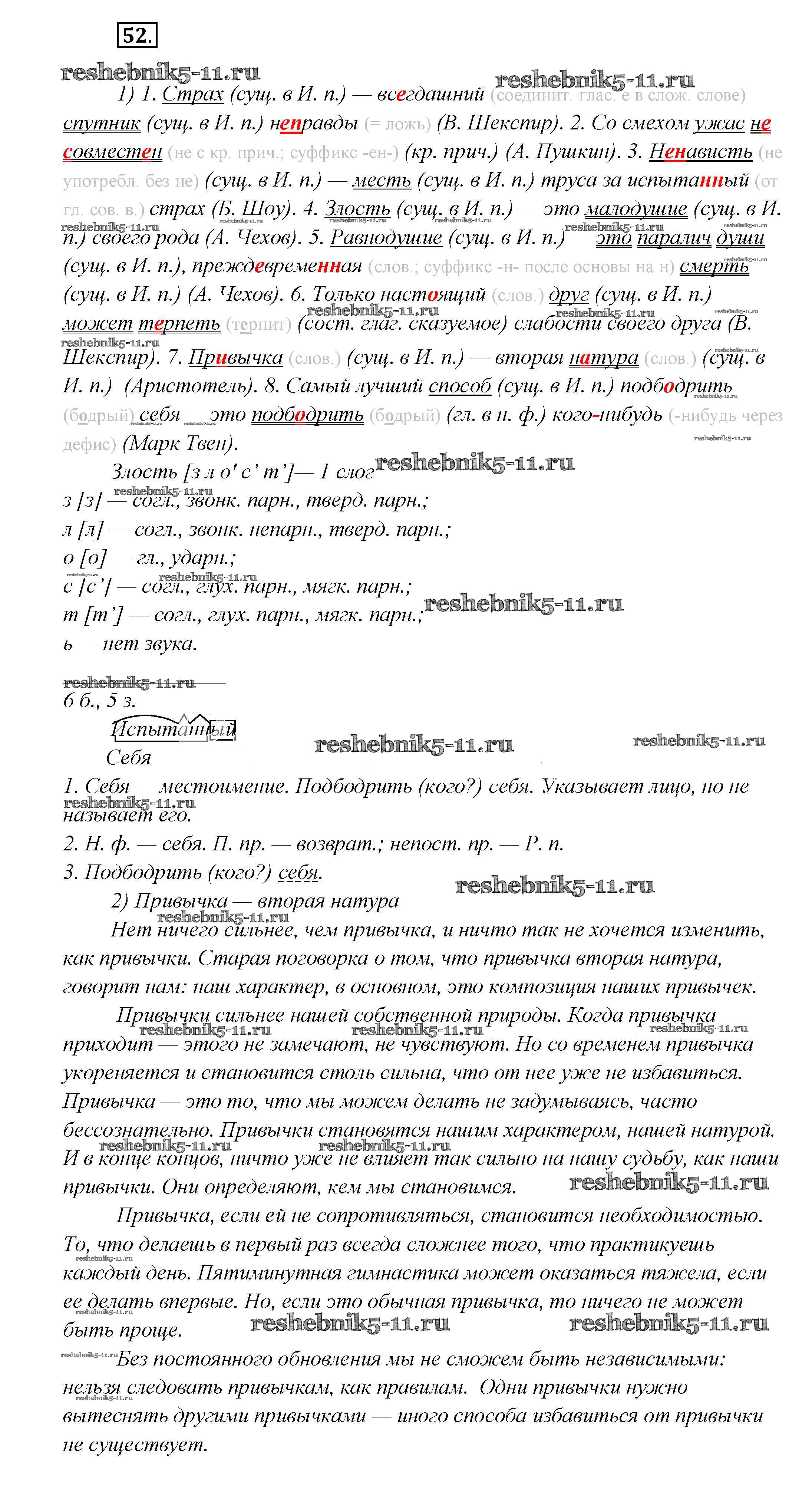 Готовая домашняя работа с ответами по Русскому языку за 7 класс Шмелёв, Флоренская, Савчук, Шмелёва Учебник Алгоритм успеха Вентана-граф 2016 ФГОС - Глава 6 52
