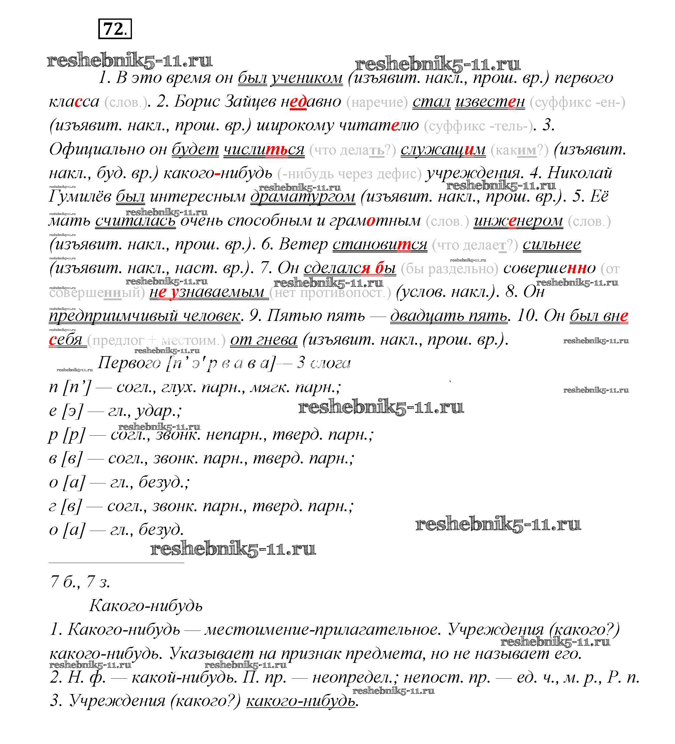 Готовая домашняя работа с ответами по Русскому языку за 7 класс Шмелёв, Флоренская, Савчук, Шмелёва Учебник Алгоритм успеха Вентана-граф 2016 ФГОС - Глава 6 72