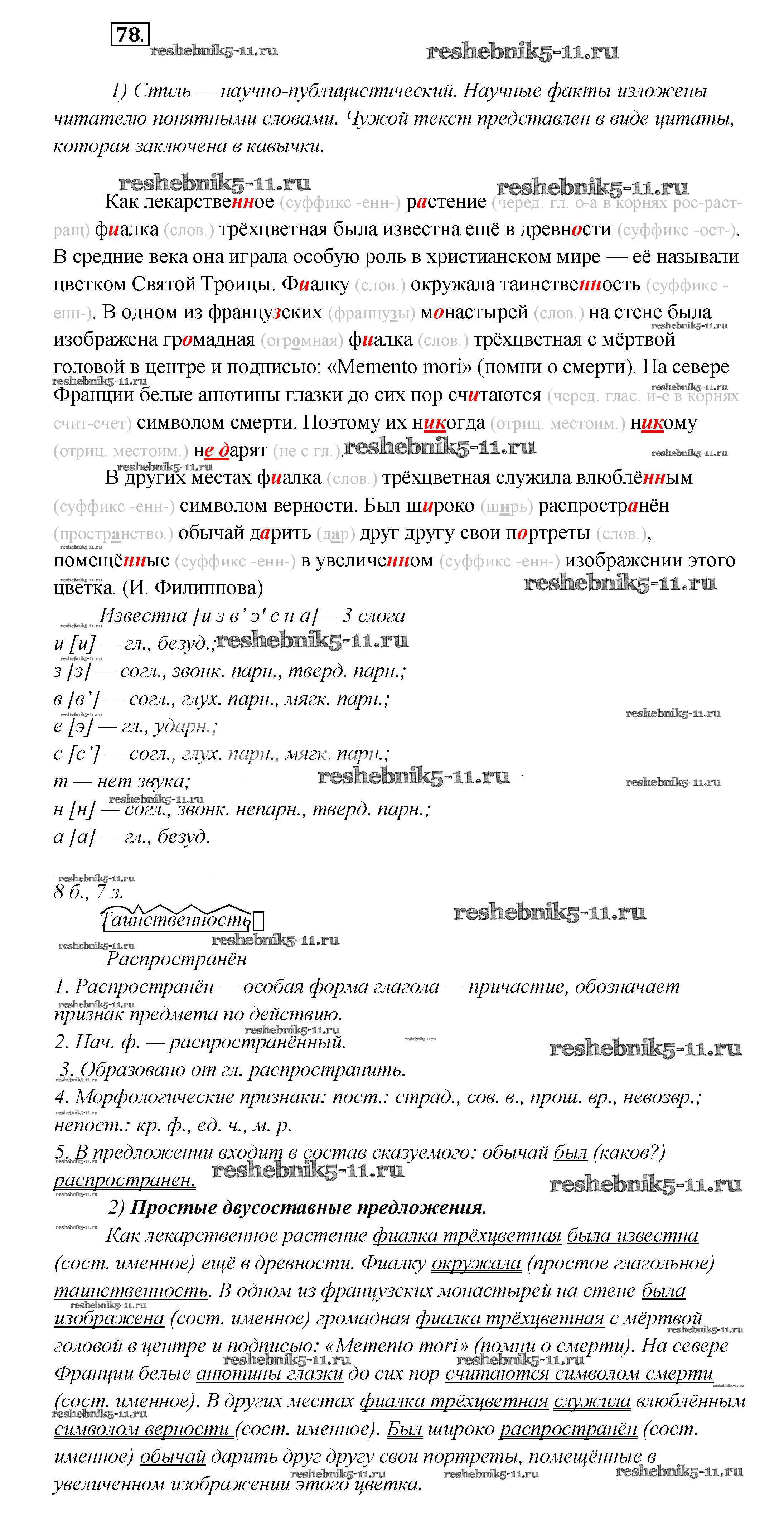 Готовая домашняя работа с ответами по Русскому языку за 7 класс Шмелёв, Флоренская, Савчук, Шмелёва Учебник Алгоритм успеха Вентана-граф 2016 ФГОС - Глава 6 78