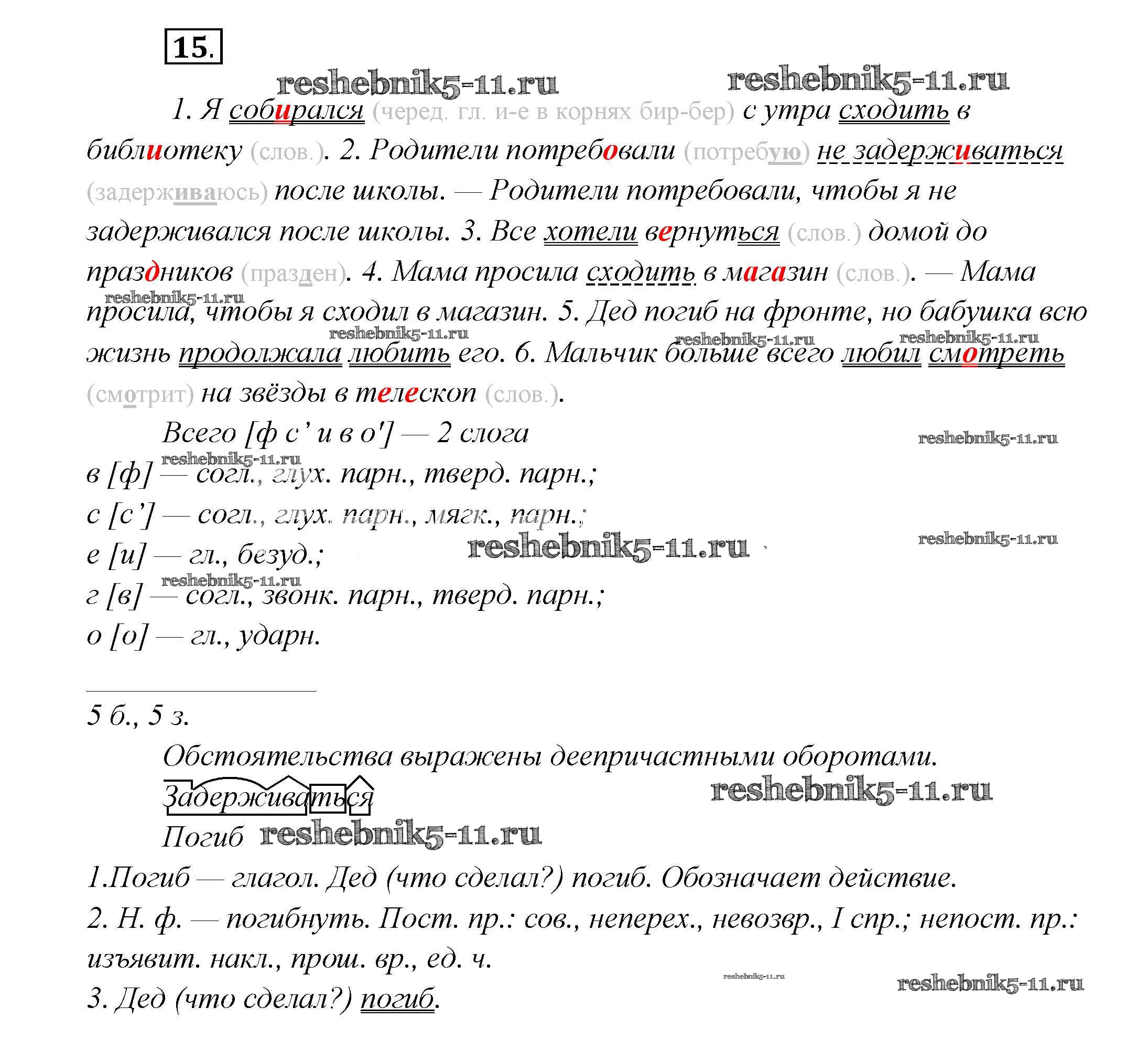 Готовая домашняя работа с ответами по Русскому языку за 7 класс Шмелёв, Флоренская, Савчук, Шмелёва Учебник Алгоритм успеха Вентана-граф 2016 ФГОС - Глава 7 15