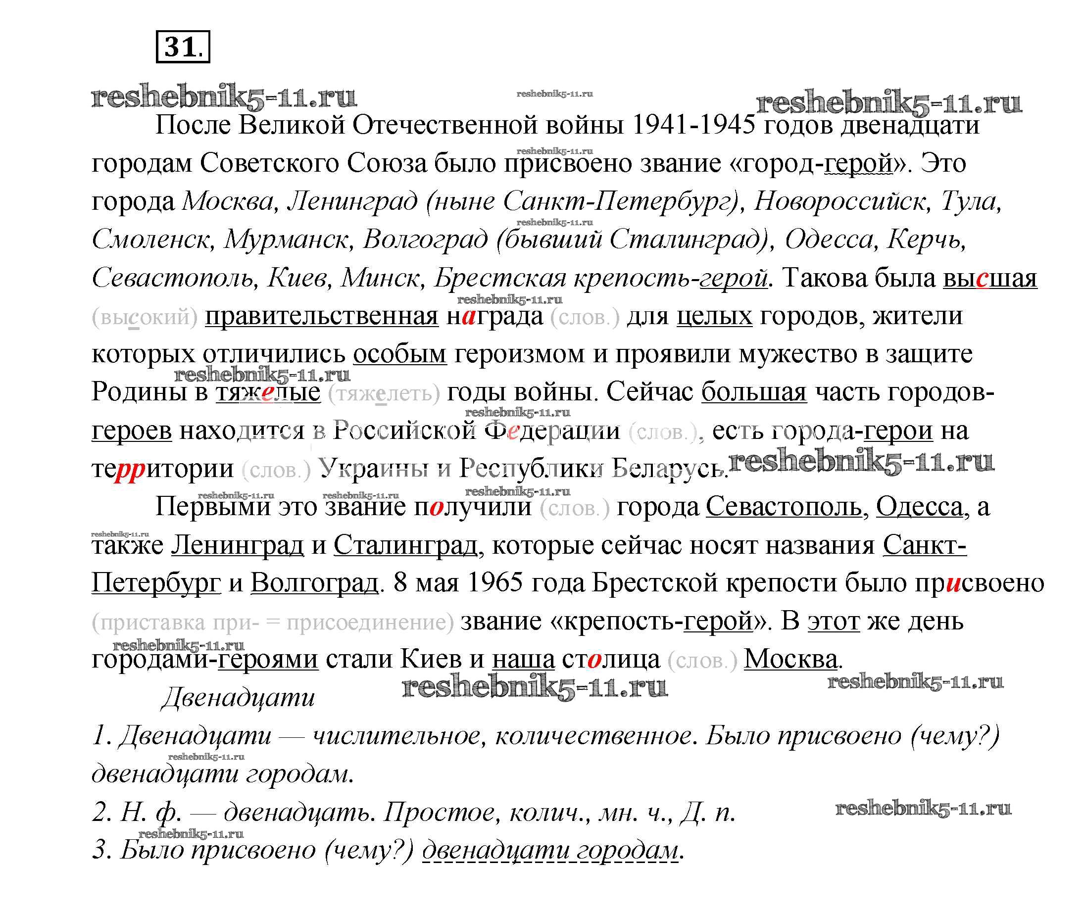 Готовая домашняя работа с ответами по Русскому языку за 7 класс Шмелёв, Флоренская, Савчук, Шмелёва Учебник Алгоритм успеха Вентана-граф 2016 ФГОС - Глава 7 31