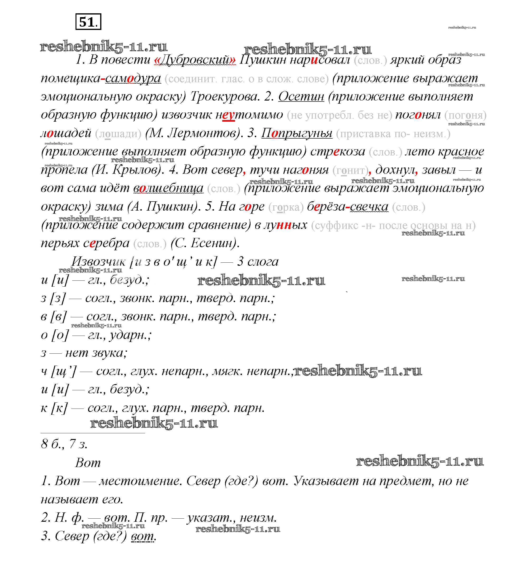 Готовая домашняя работа с ответами по Русскому языку за 7 класс Шмелёв, Флоренская, Савчук, Шмелёва Учебник Алгоритм успеха Вентана-граф 2016 ФГОС - Глава 7 51