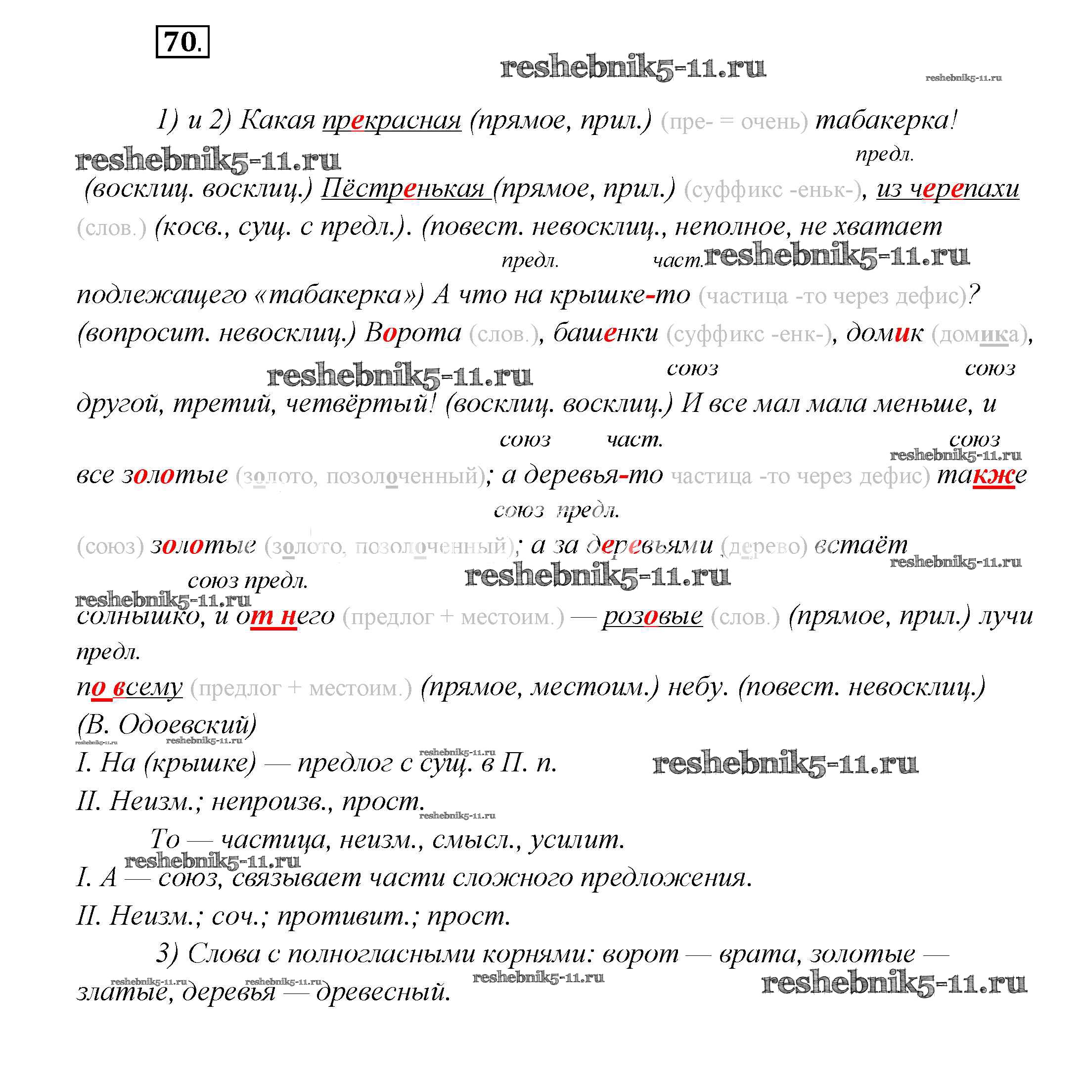 Готовая домашняя работа с ответами по Русскому языку за 7 класс Шмелёв, Флоренская, Савчук, Шмелёва Учебник Алгоритм успеха Вентана-граф 2016 ФГОС - Глава 7 70