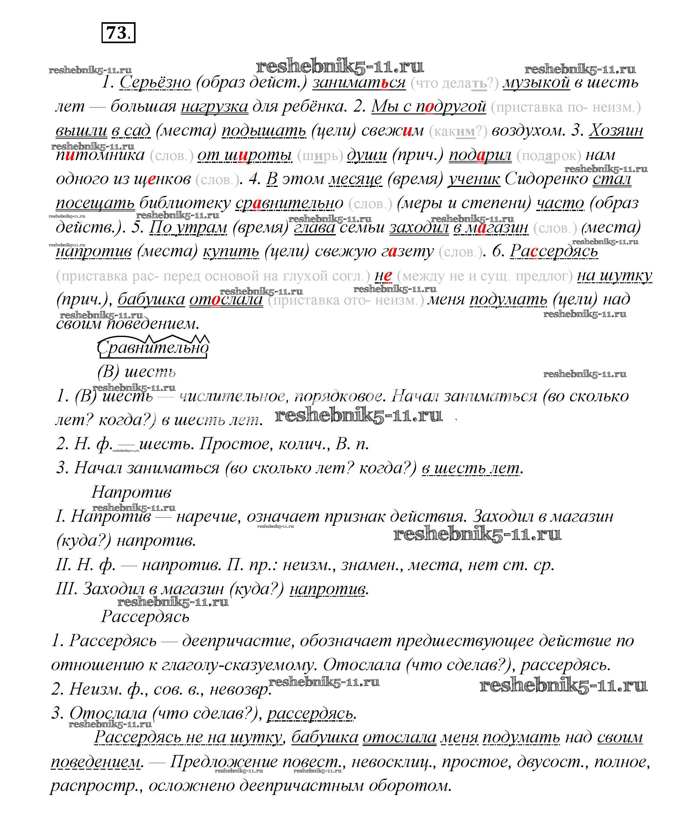 Готовая домашняя работа с ответами по Русскому языку за 7 класс Шмелёв, Флоренская, Савчук, Шмелёва Учебник Алгоритм успеха Вентана-граф 2016 ФГОС - Глава 7 73