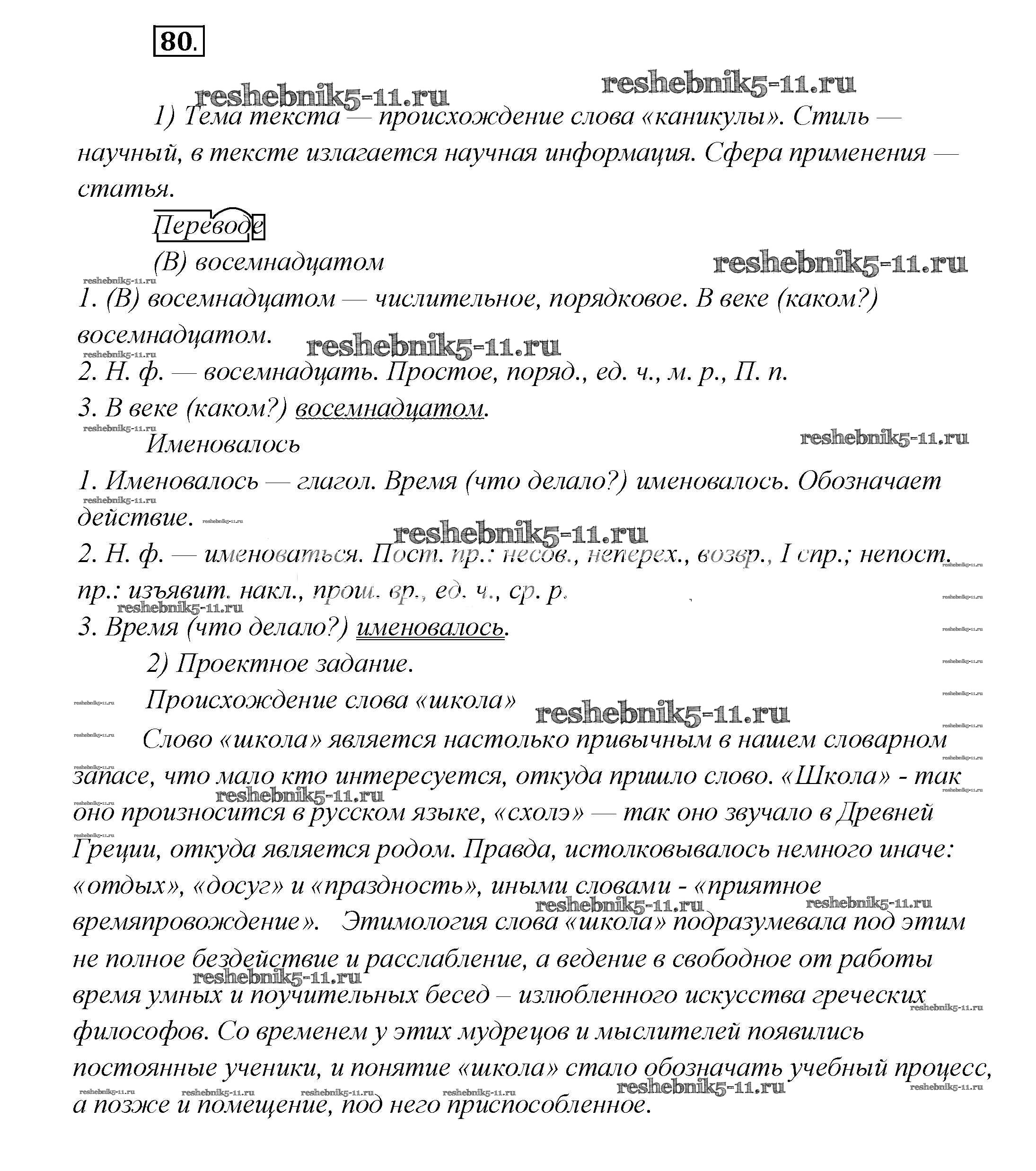 Готовая домашняя работа с ответами по Русскому языку за 7 класс Шмелёв, Флоренская, Савчук, Шмелёва Учебник Алгоритм успеха Вентана-граф 2016 ФГОС - Глава 7 80