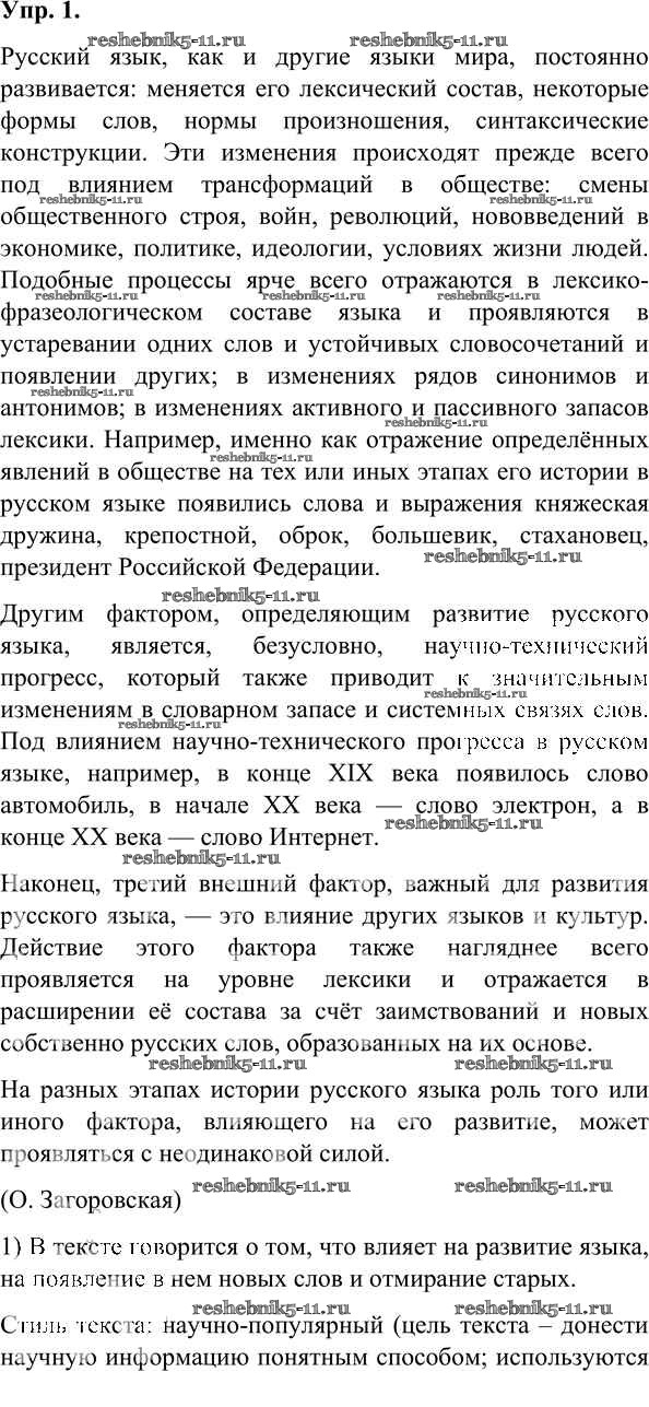 Русский язык за 7 класс Александрова Учебник Просвещение упражнение 1