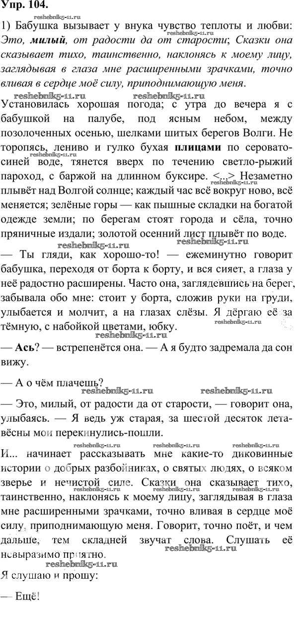 Готовая домашняя работа с ответами по Русскому языку за 7 класс Александрова, Загоровская, Богданов Учебник Просвещение 2020 ФГОС - Упражнения 104