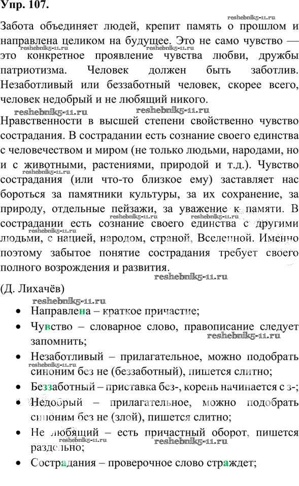 Готовая домашняя работа с ответами по Русскому языку за 7 класс Александрова, Загоровская, Богданов Учебник Просвещение 2020 ФГОС - Упражнения 107