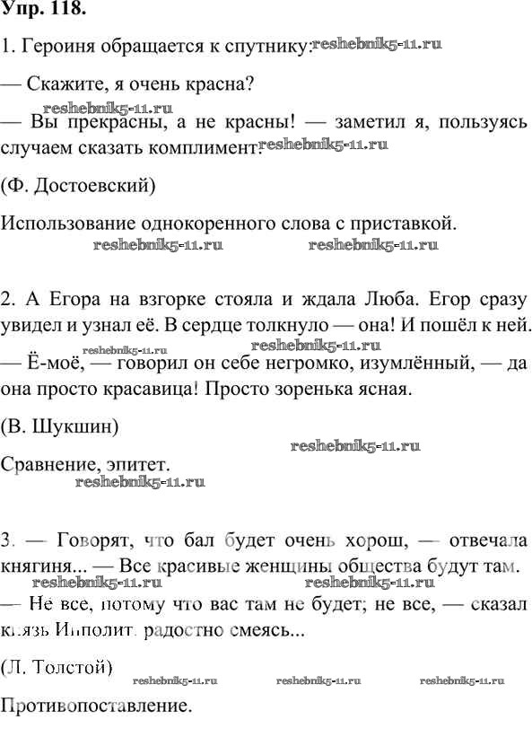 Готовая домашняя работа с ответами по Русскому языку за 7 класс Александрова, Загоровская, Богданов Учебник Просвещение 2020 ФГОС - Упражнения 118