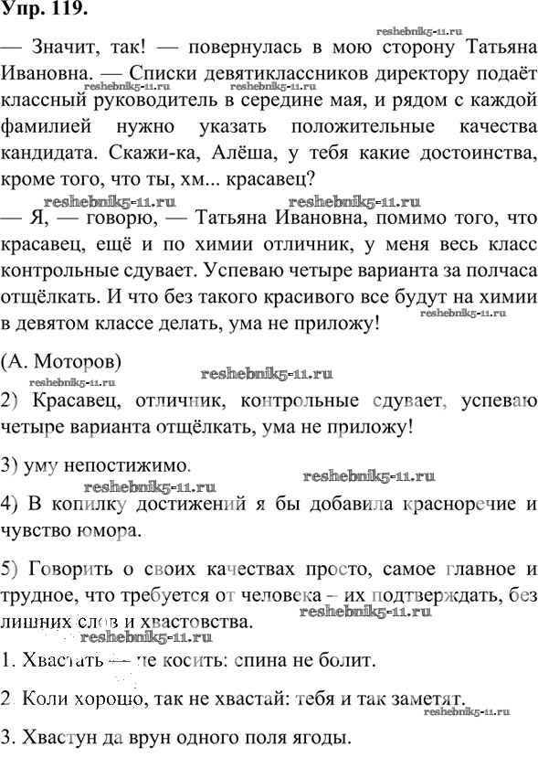 Готовая домашняя работа с ответами по Русскому языку за 7 класс Александрова, Загоровская, Богданов Учебник Просвещение 2020 ФГОС - Упражнения 119