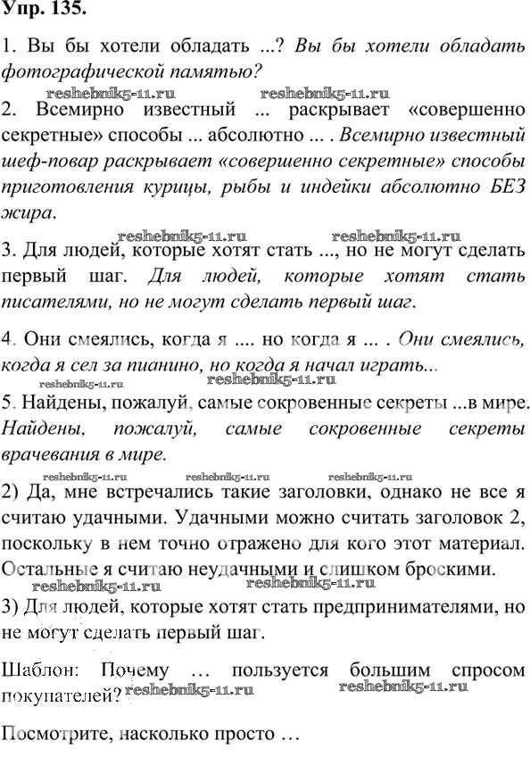 Готовая домашняя работа с ответами по Русскому языку за 7 класс Александрова, Загоровская, Богданов Учебник Просвещение 2020 ФГОС - Упражнения 135