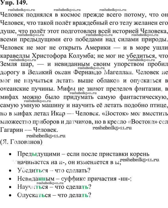 Готовая домашняя работа с ответами по Русскому языку за 7 класс Александрова, Загоровская, Богданов Учебник Просвещение 2020 ФГОС - Упражнения 149