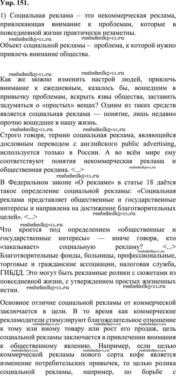 Готовая домашняя работа с ответами по Русскому языку за 7 класс Александрова, Загоровская, Богданов Учебник Просвещение 2020 ФГОС - Упражнения 151