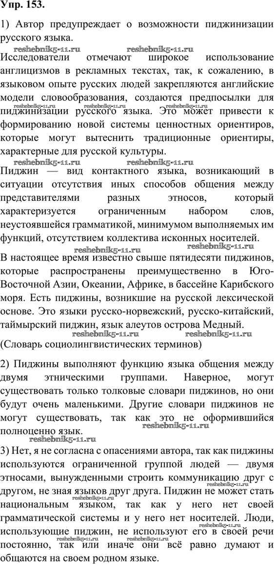 Готовая домашняя работа с ответами по Русскому языку за 7 класс Александрова, Загоровская, Богданов Учебник Просвещение 2020 ФГОС - Упражнения 153