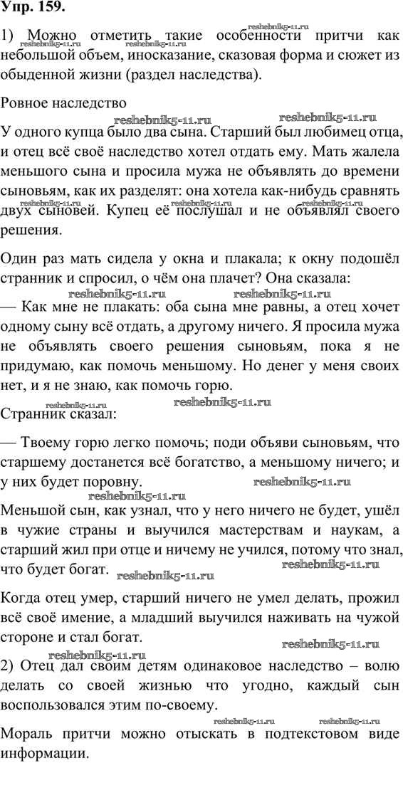 Готовая домашняя работа с ответами по Русскому языку за 7 класс Александрова, Загоровская, Богданов Учебник Просвещение 2020 ФГОС - Упражнения 159