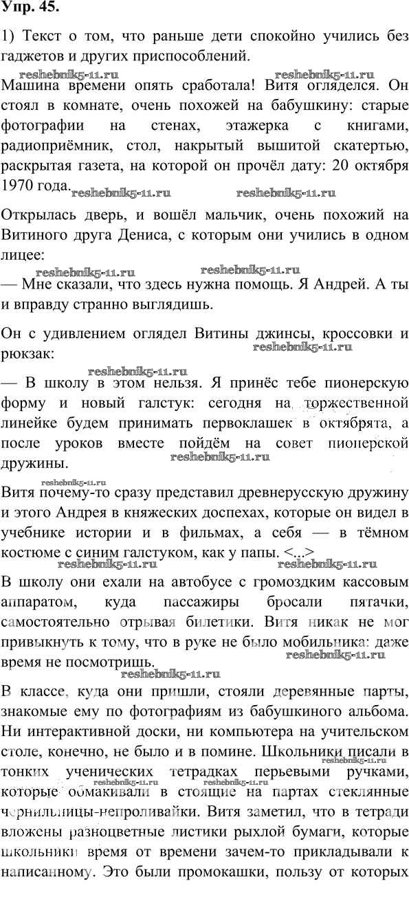 Готовая домашняя работа с ответами по Русскому языку за 7 класс Александрова, Загоровская, Богданов Учебник Просвещение 2020 ФГОС - Упражнения 45