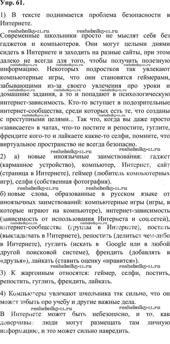 Готовая домашняя работа с ответами по Русскому языку за 7 класс Александрова, Загоровская, Богданов Учебник Просвещение 2020 ФГОС - Упражнения 61