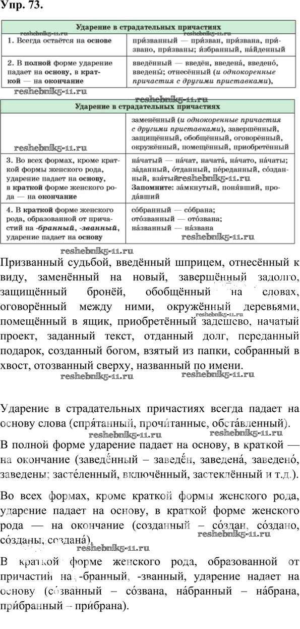 Готовая домашняя работа с ответами по Русскому языку за 7 класс Александрова, Загоровская, Богданов Учебник Просвещение 2020 ФГОС - Упражнения 73