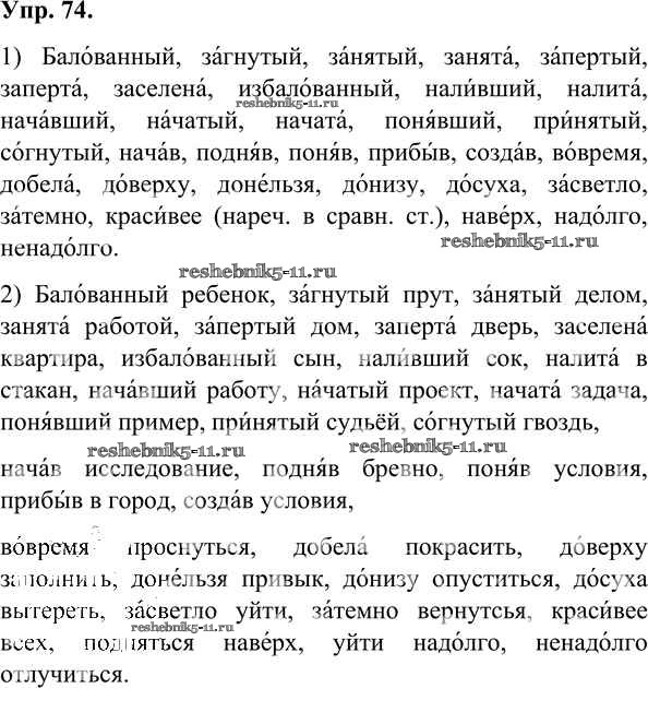 Готовая домашняя работа с ответами по Русскому языку за 7 класс Александрова, Загоровская, Богданов Учебник Просвещение 2020 ФГОС - Упражнения 74
