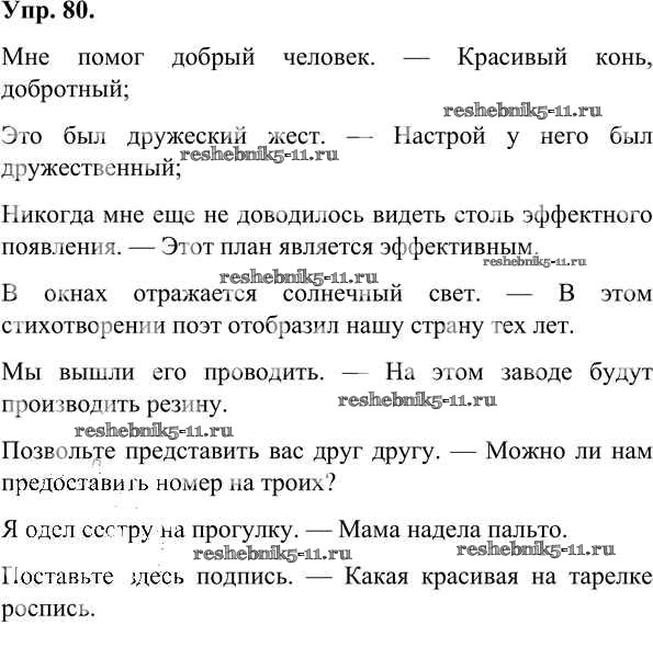 Готовая домашняя работа с ответами по Русскому языку за 7 класс Александрова, Загоровская, Богданов Учебник Просвещение 2020 ФГОС - Упражнения 80