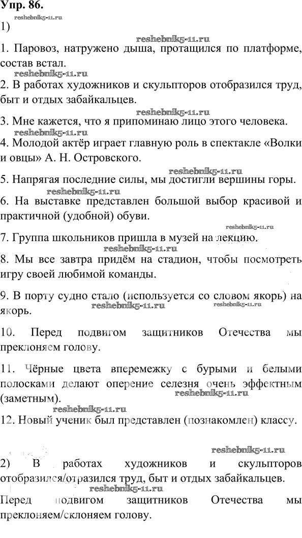 Готовая домашняя работа с ответами по Русскому языку за 7 класс Александрова, Загоровская, Богданов Учебник Просвещение 2020 ФГОС - Упражнения 86