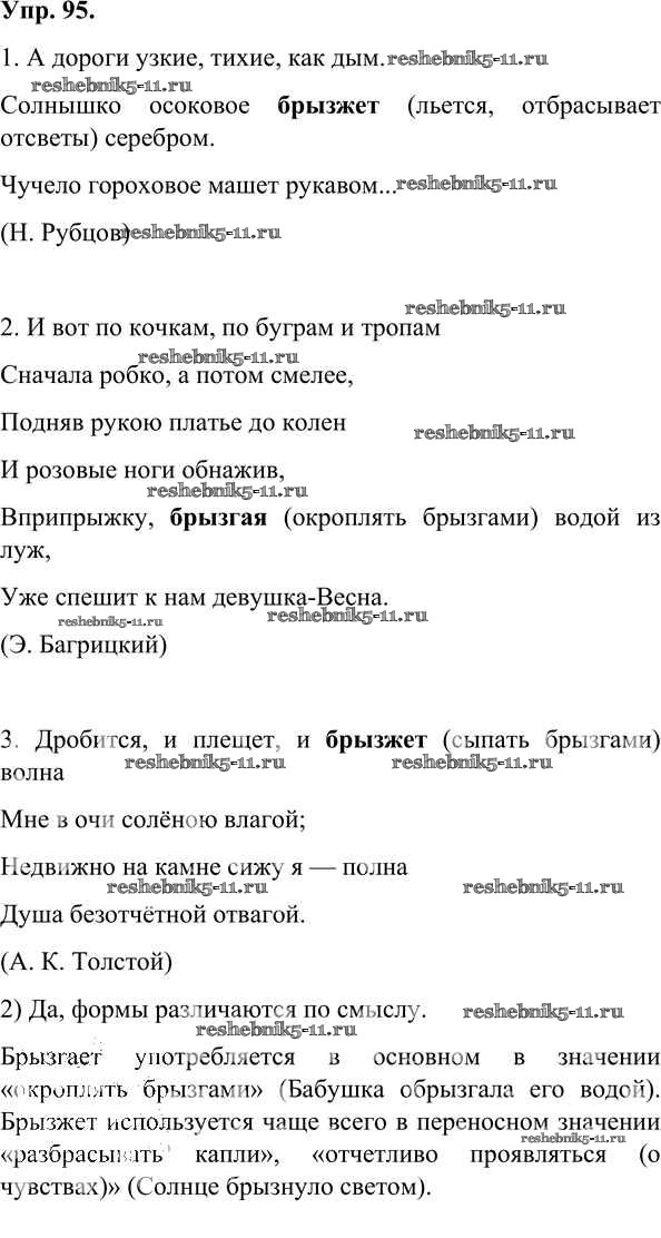 Готовая домашняя работа с ответами по Русскому языку за 7 класс Александрова, Загоровская, Богданов Учебник Просвещение 2020 ФГОС - Упражнения 95
