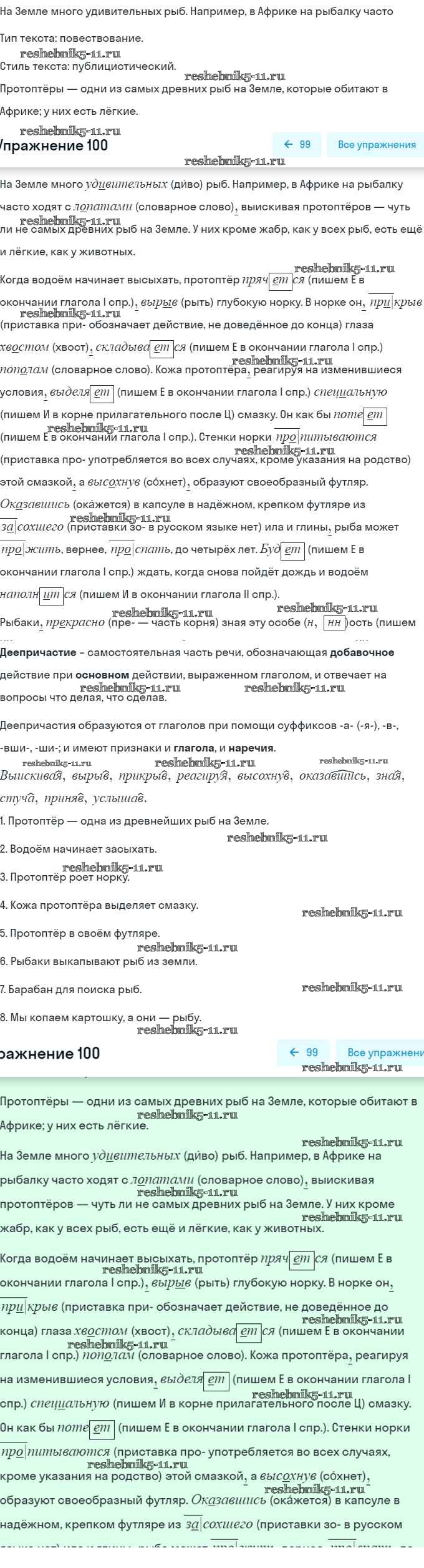 Готовая домашняя работа с ответами по Русскому языку за 7 класс Янченко, Латфуллина, Михайлова Рабочая тетрадь Часть 1, 2 Просвещение 2017 - Упражнения 100
