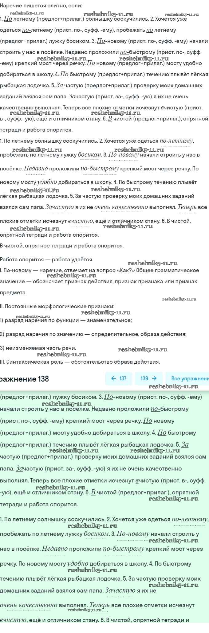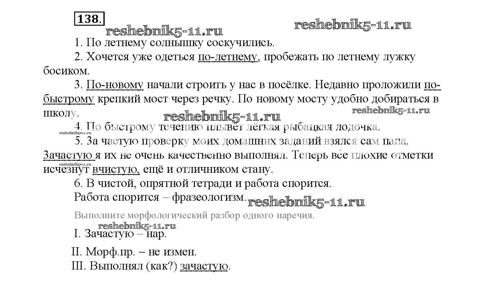 Готовая домашняя работа с ответами по Русскому языку за 7 класс Янченко, Латфуллина, Михайлова Рабочая тетрадь Часть 1, 2 Просвещение 2017 - Упражнения 138